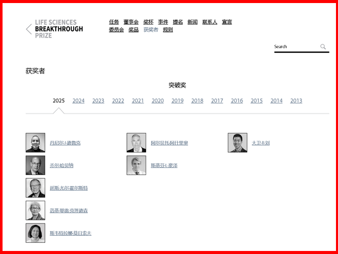 据介绍,本年度“科学突破奖”设3个“生命科学突破奖”、2个“基础物理学突破奖”和1个“数学突破奖”共6个单项奖,每个奖项的奖金都是300万美元。