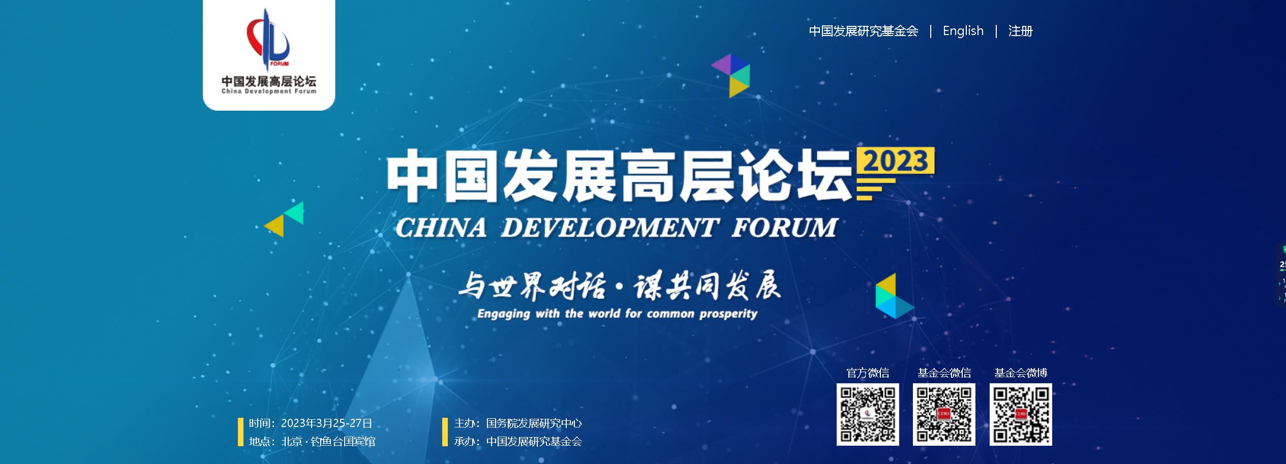 当天,中国发展高层论坛2023年年会经济峰会在北京钓鱼台国宾馆举行。本届论坛主题为“经济复苏:机遇与合作”。