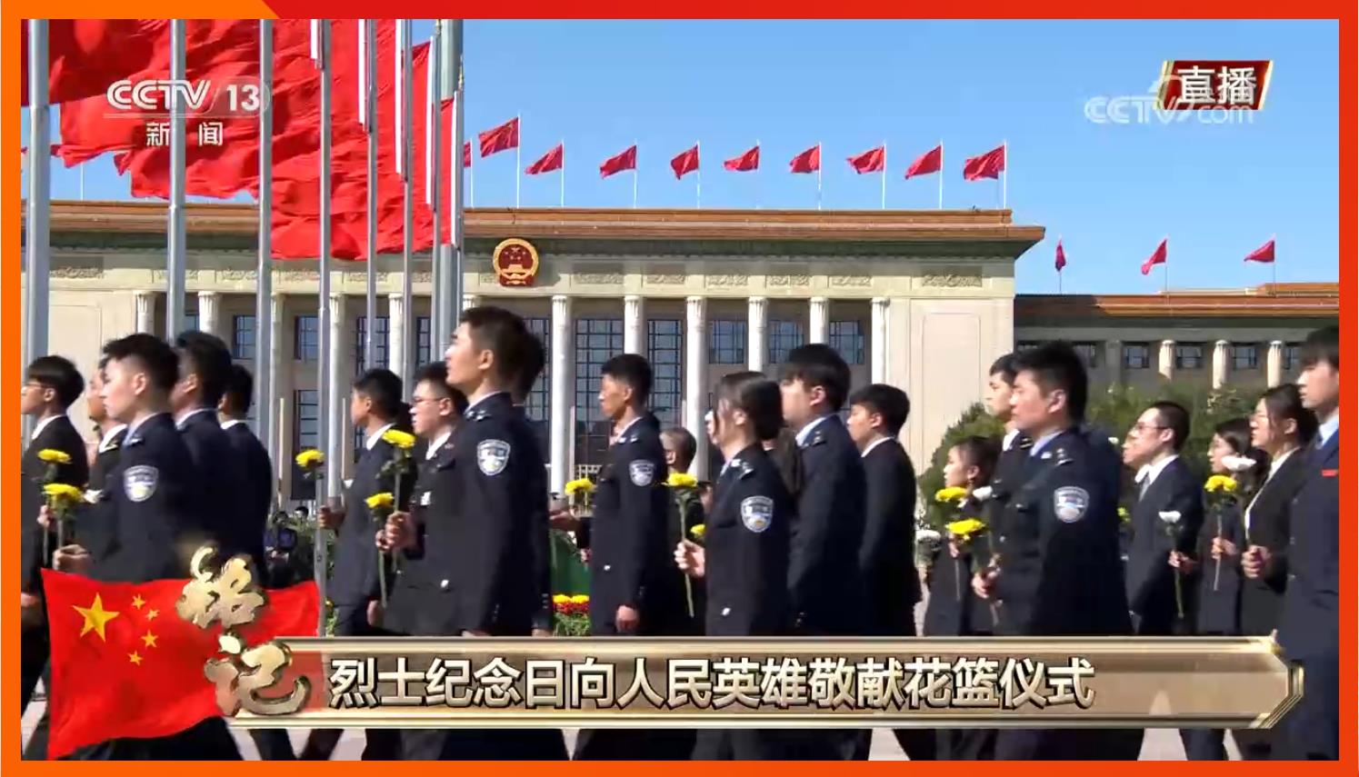 今天是我国第十个“烈士纪念日”。庄严的天安门广场上,鲜艳的五星红旗高高飘扬。广场中央,“祝福祖国”巨型花篮表达着对国家繁荣富强的美好祝福。人民英雄纪念碑巍然耸立,北侧两组花坛上白菊等鲜花组成的18个花环,寄托着全体中华儿女对英烈的深情追思。