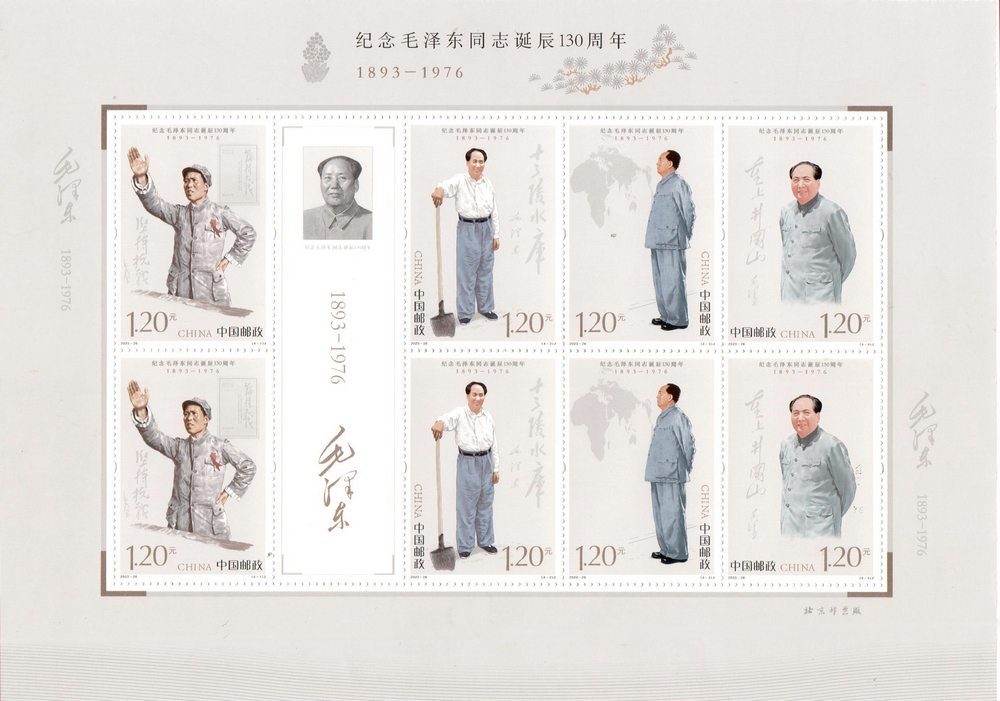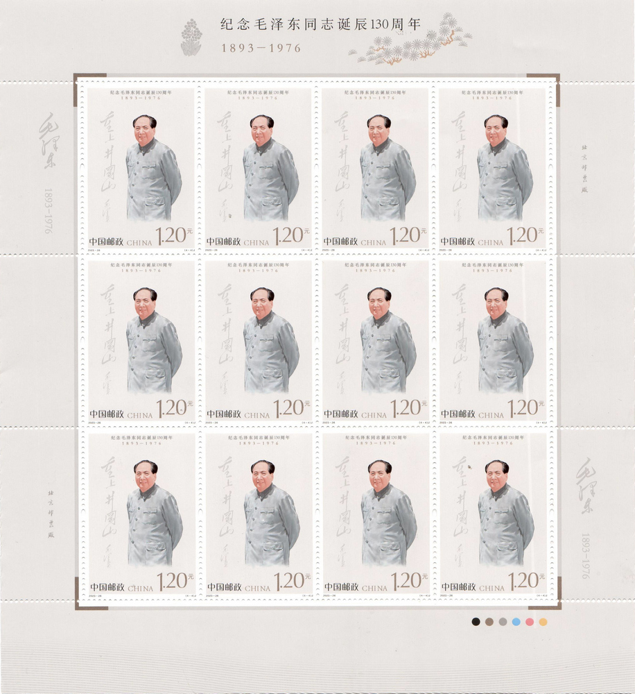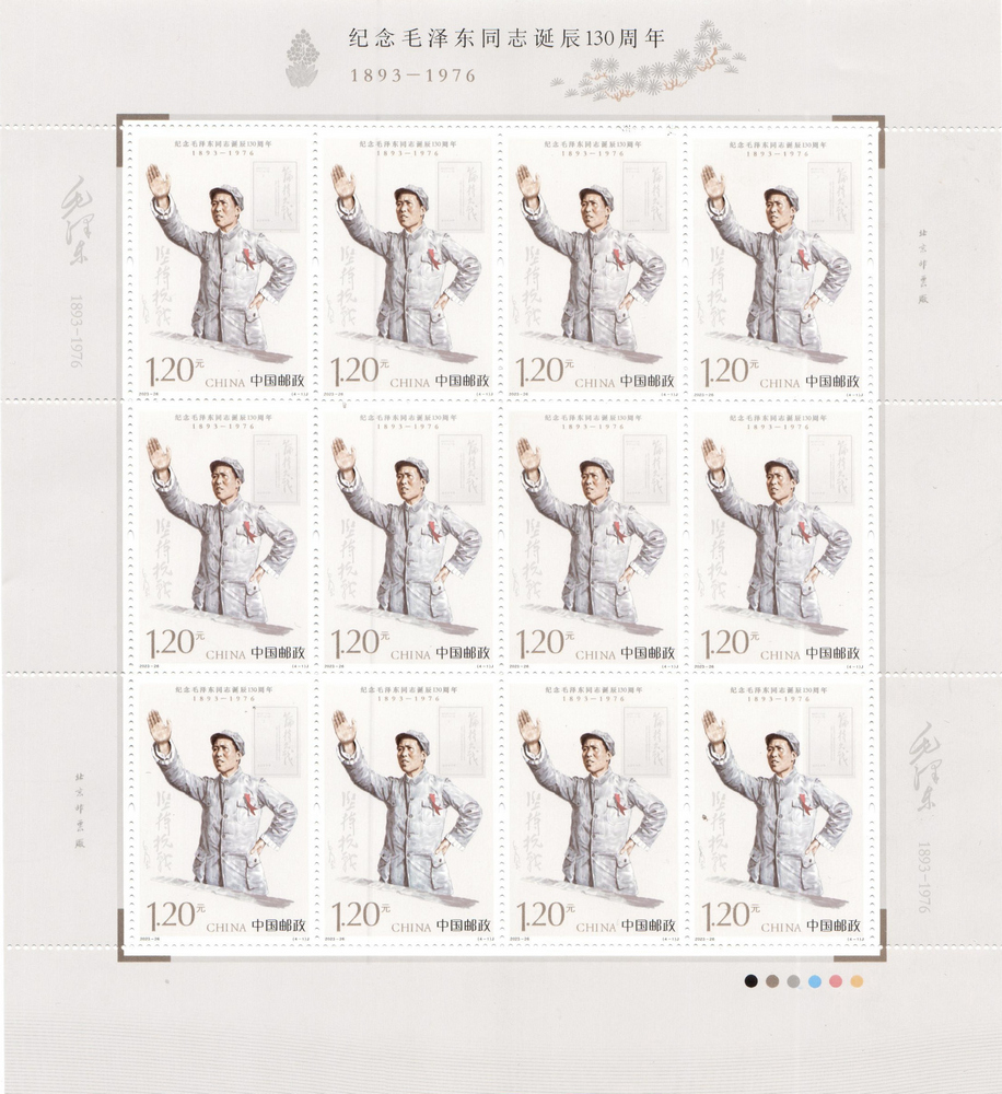邮票图案运用数字绘画实现传统绘画的视觉表现,生动还原了毛泽东同志伟岸的形象和伟大的气魄,展现出毛泽东同志运筹帷幄的雄才伟略和高瞻远瞩的伟人风范。