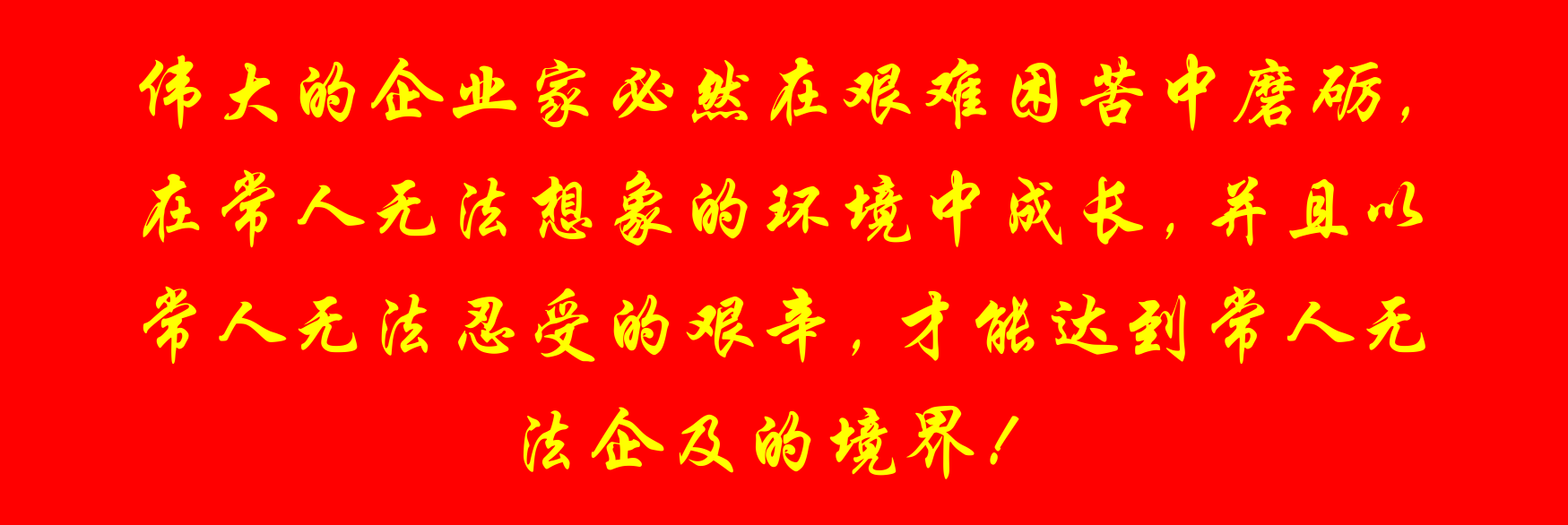 伟大的企业家必然在艰难困苦中磨砺,在常人无法想象的环境中成长,并且以常人无法忍受的艰辛,才能达到常人无法企及的境界!如果你能够聚集一百人,你就是小悟水平的企业;如果你能够达到一千人,就是中悟的公司了;如果能够让一万人在你的集团工作,可以达到大悟的标准了;超越十万人能够让几十万人在你的麾下工作,大彻大悟的顶峰已经在你的脚下了,那是什么概念呢?!