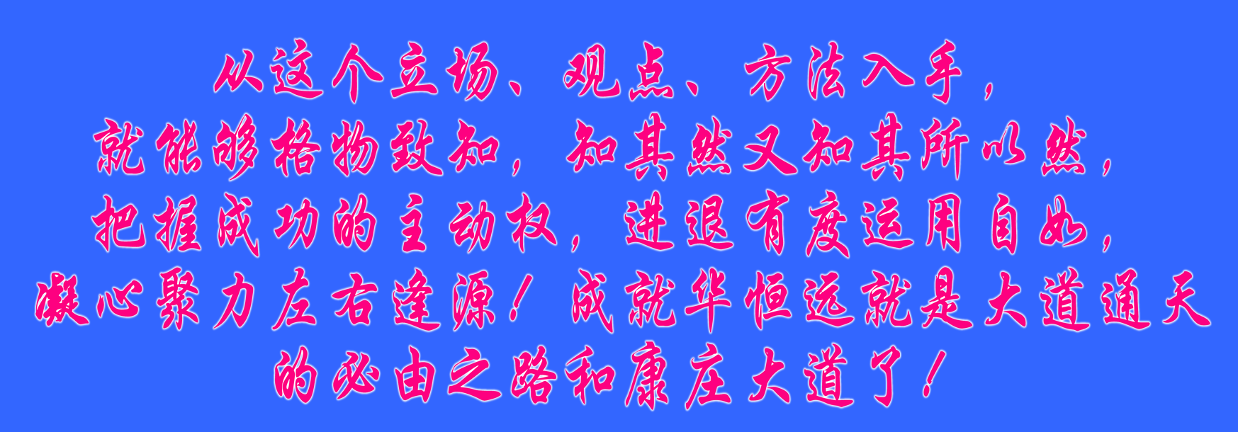 从这个立场、观点、方法入手,就能够格物致知,知其然又知其所以然,把握成功的主动权,进退有度运用自如,凝心聚力左右逢源!成就太阳成tyc7111cc官网就是大道通天的必由之路和康庄大道了!