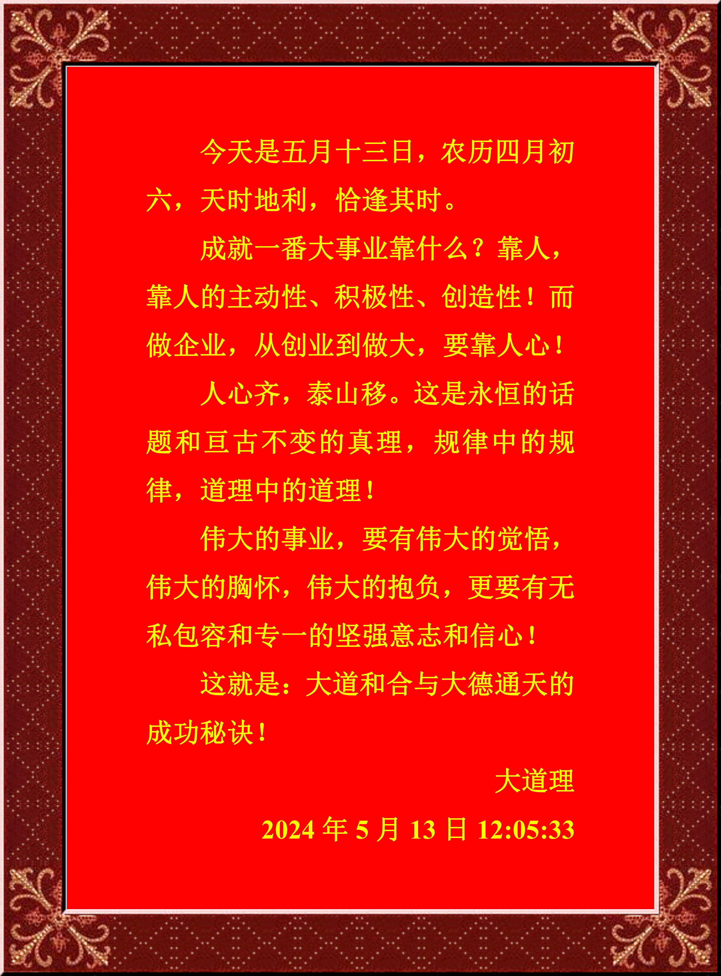 这就是:大道和合与大德通天的成功秘诀!正所谓:登高望远天地宽,一念成真在登攀!