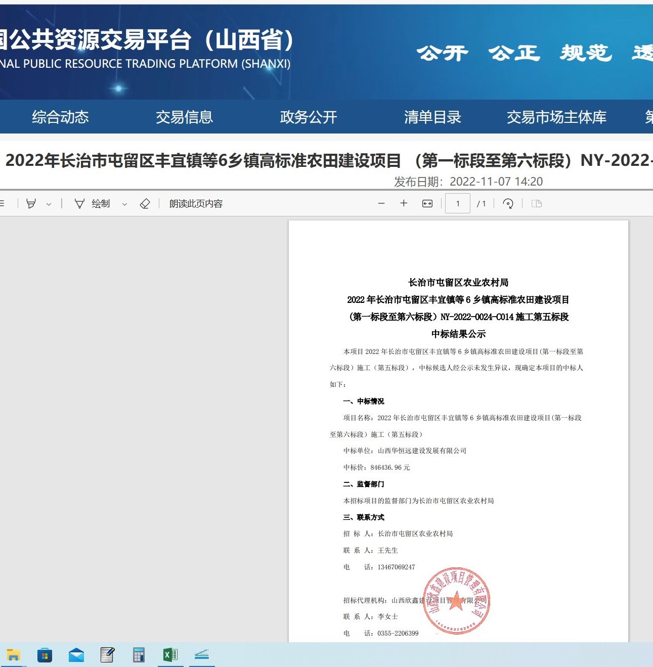 2022年长治市屯留区丰宜镇等6乡镇高标准农田项目第五标段