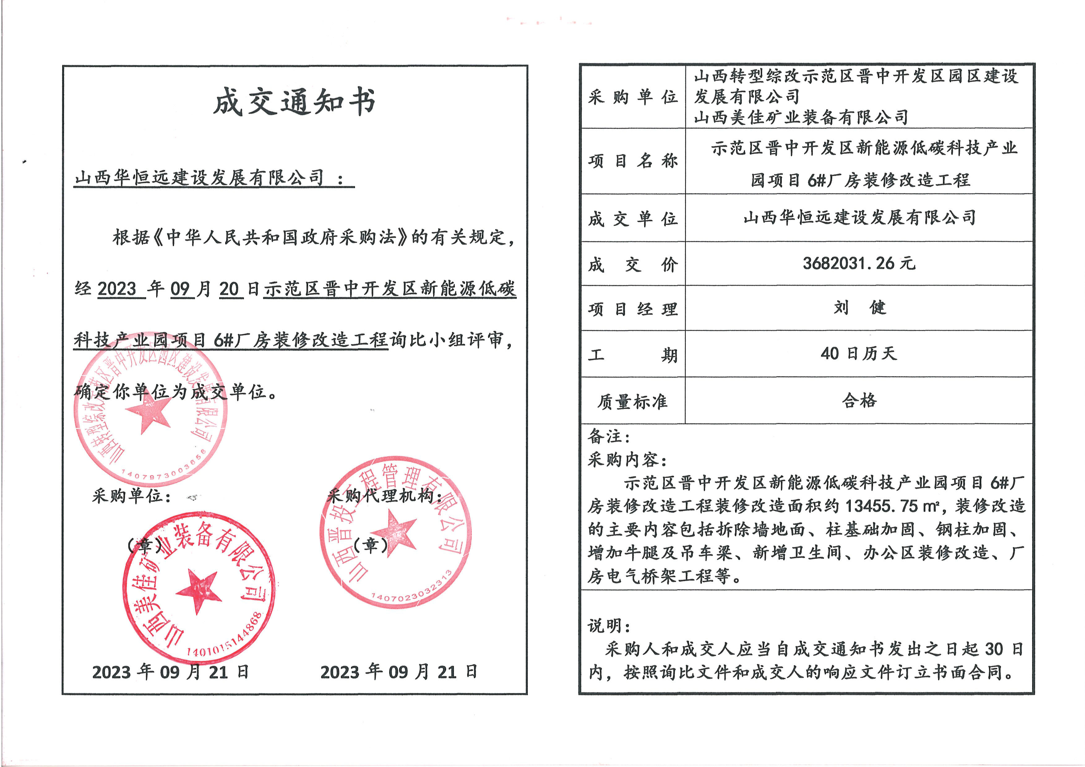 示范区晋中开发区新能源低碳科技产业园项目6#厂房装修改造工程