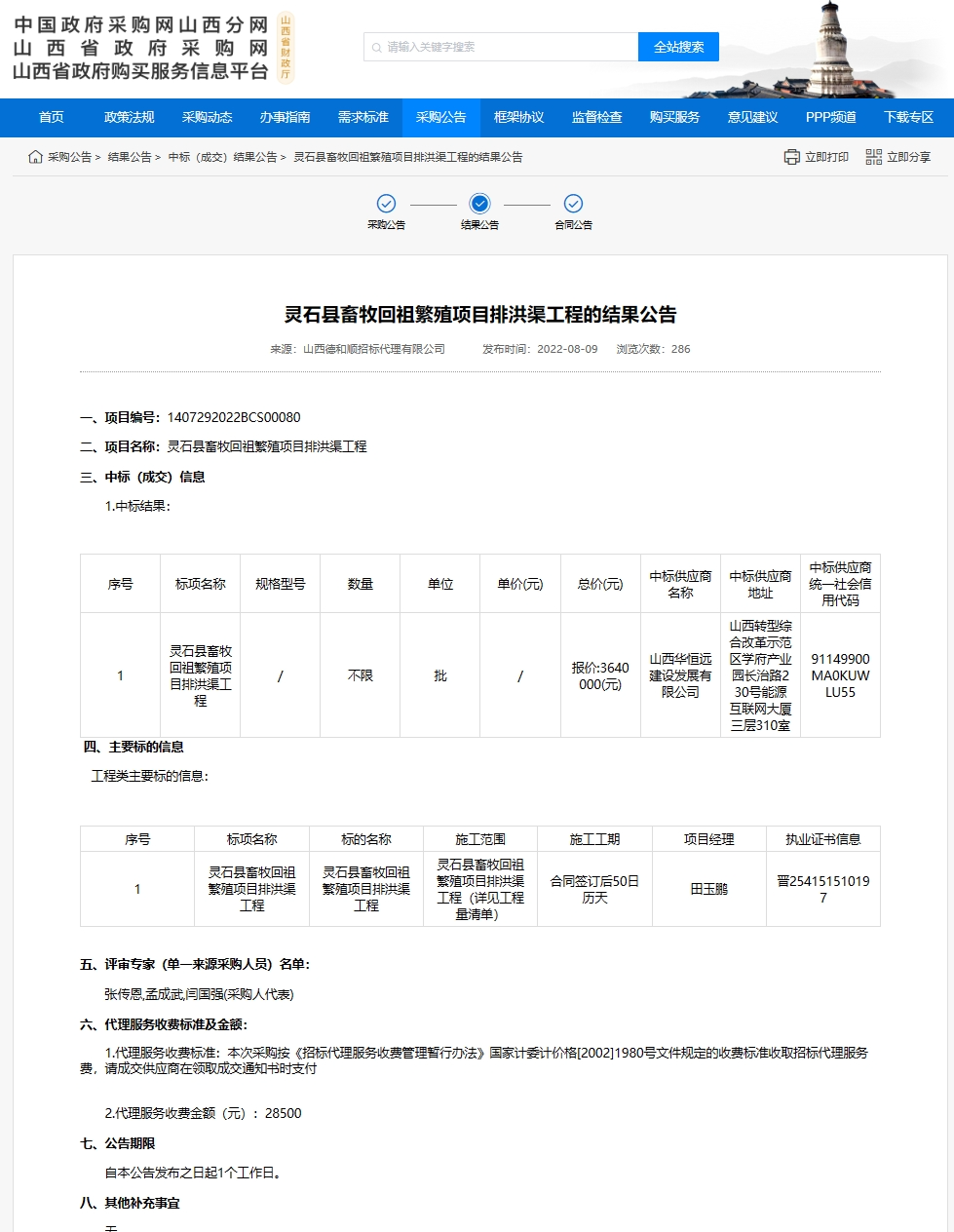 灵石县畜牧回祖繁殖项目排洪渠工程