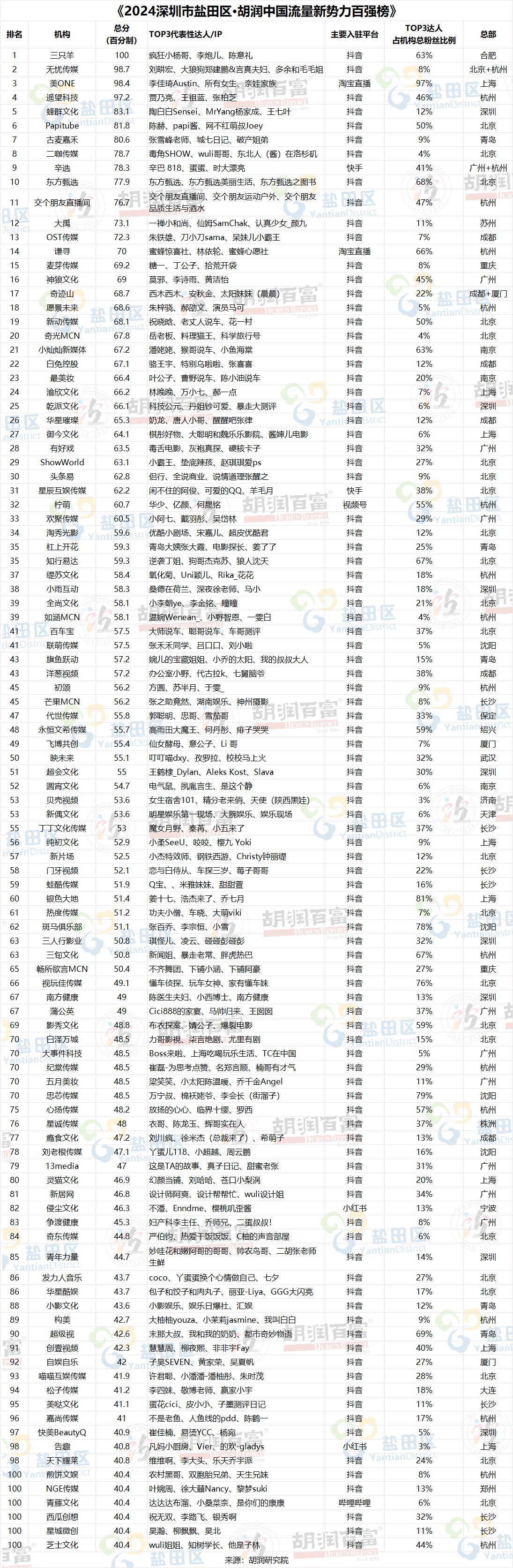 2024深圳市盐田区·胡润中国流量新势力百强榜