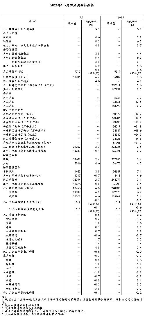 7月份国民经济运行总体平稳、稳中有进2024-08-15