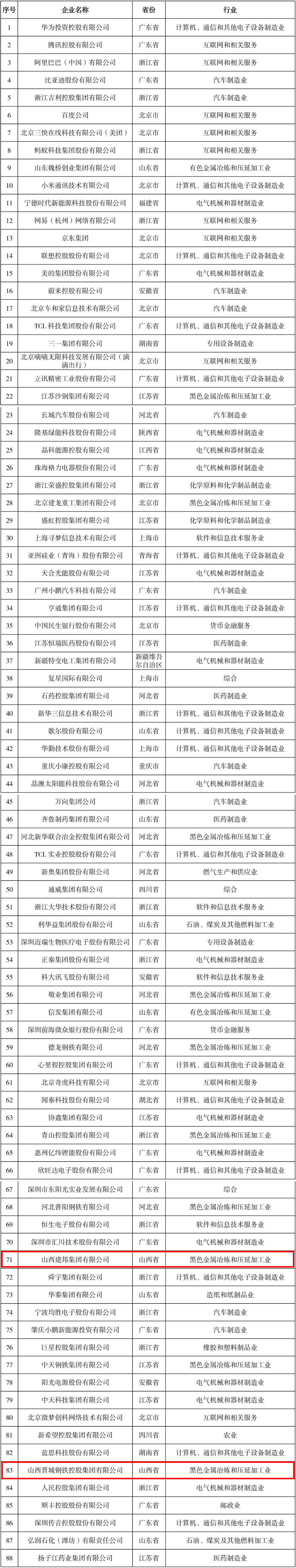 梳理2024民营企业研发投入500家榜单,山西入榜6家民营企业分别是:71位的山西建邦集团有限公司、83位的山西晋城钢铁控股集团有限公司、152位的长治市南烨实业集团有限公司、167位的山西晋南钢铁集团有限公司、297位的山西安泰控股集团有限公司、473位的山西高义钢铁有限公司。山西入榜6家企业里,长治市南烨实业集团有限公司属于计算机、通信和其他电子设备制造业行业,其余5家均属黑色金属冶炼和压延加工业行业。