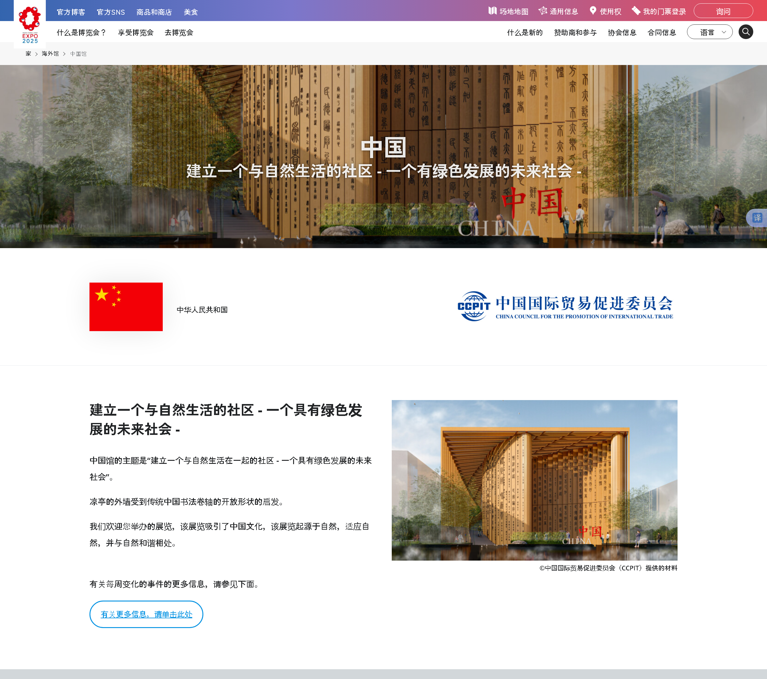 中国馆作为本次世博会面积最大的外国自建馆之一,外观设计以“中华书简”为灵感,巧妙融合了竹子、汉字和书卷三个核心元素,向世界展现浓厚的中国韵味。担任中国馆建筑概念设计方案总设计师的中国工程院院士、中国建设科技有限公司首席科学家崔愷在接受《环球时报》记者专访时表示:“书简是古代文字书写与传播的重要载体,今天的中国强调文化自信,我们“打开”书简,向全世界传播我们绿水青山的价值观和生态文明的最新成就。”