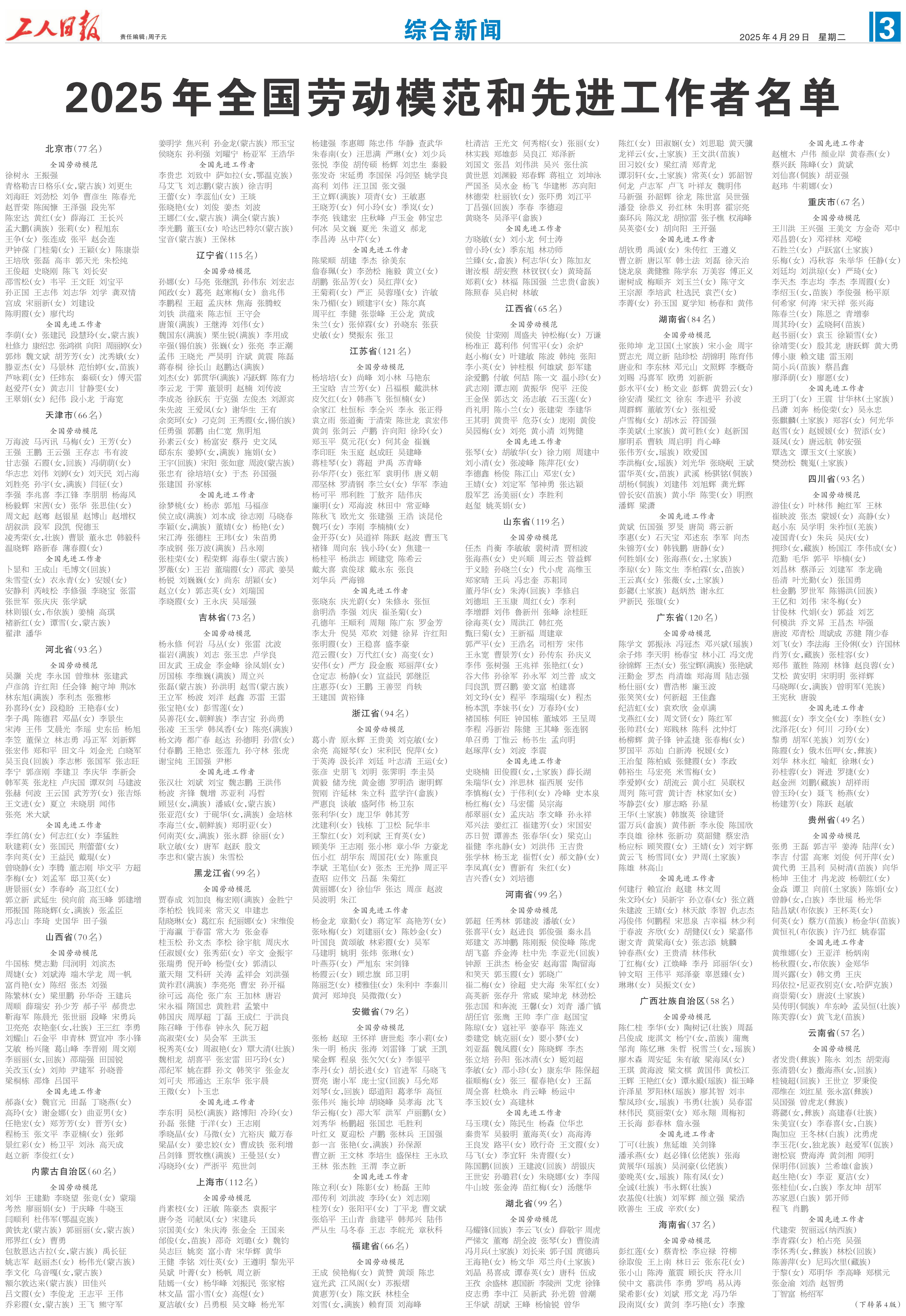 2010年4月27日,国务院在北京人民大会堂召开全国劳动模范和先进工作者表彰大会。胡锦涛、吴邦国、温家宝、贾庆林、李长春、习近平、李克强、贺国强等党和国家领导人出席大会,胡锦涛代表党中央、国务院发表重要讲话。此次大会,国务院授予全国劳动模范称号2115人,授予全国先进工作者称号870人。