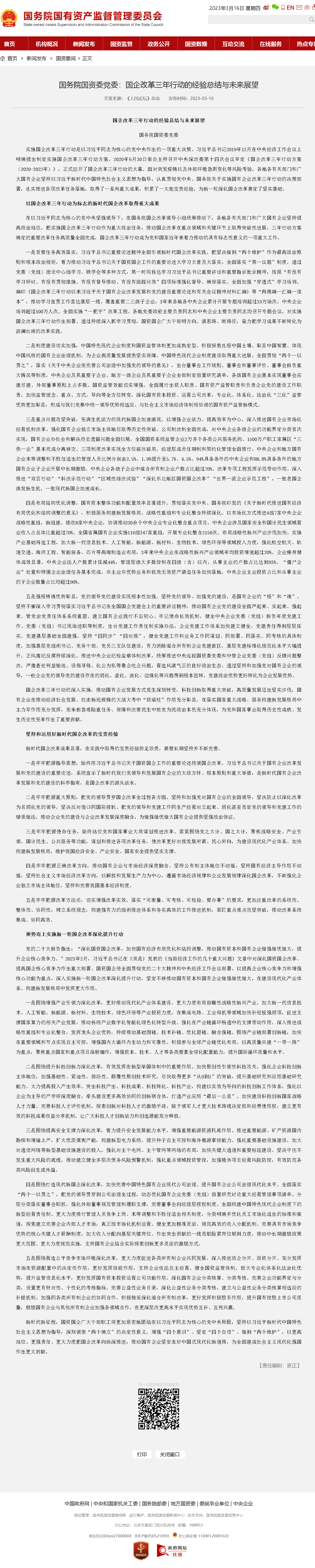 国务院国资委党委:国企改革三年行动的经验总结与未来展望