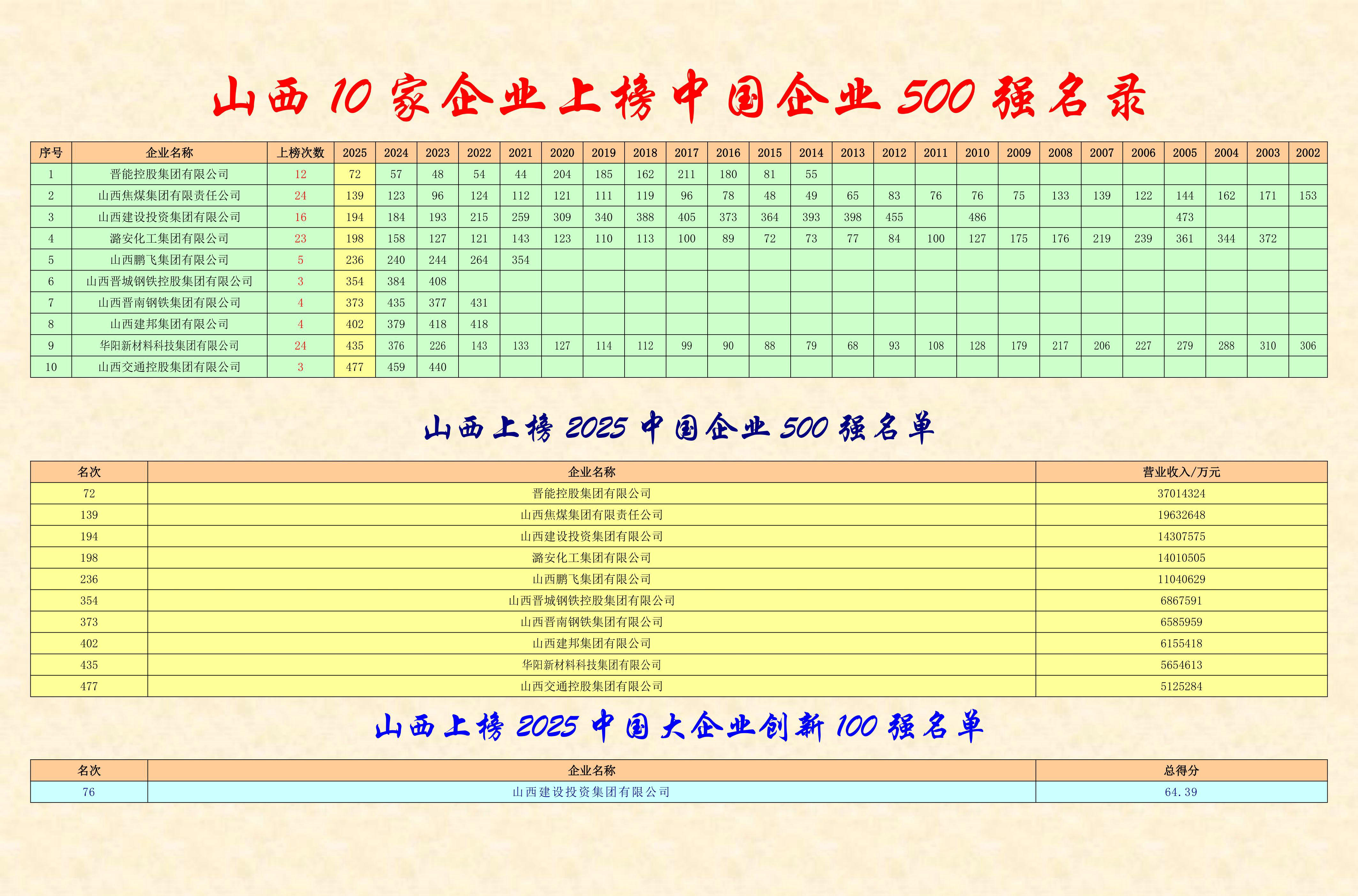 9月15日,中国企业联合会、中国企业家协会发布“2025中国企业500强”“2025中国大企业创新100强”等榜单。山西建投以1430.76亿元营收位列“2025中国企业500强”榜单第194位,同时以64.39的总得分排名“2025中国大企业创新100强”榜单第76位,展现了持续强劲的综合实力与创新竞争力。