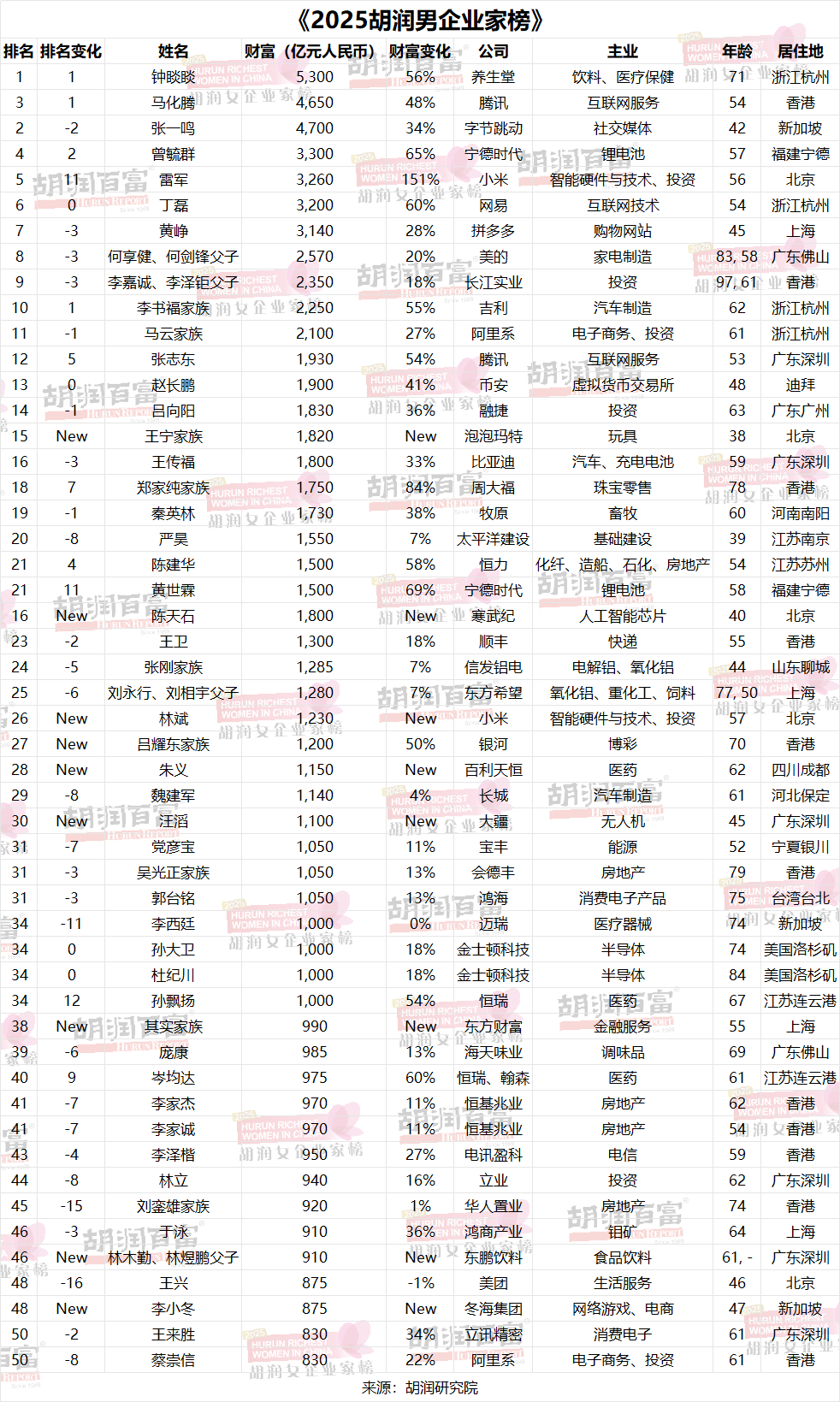 附录:《2025胡润男企业家榜》