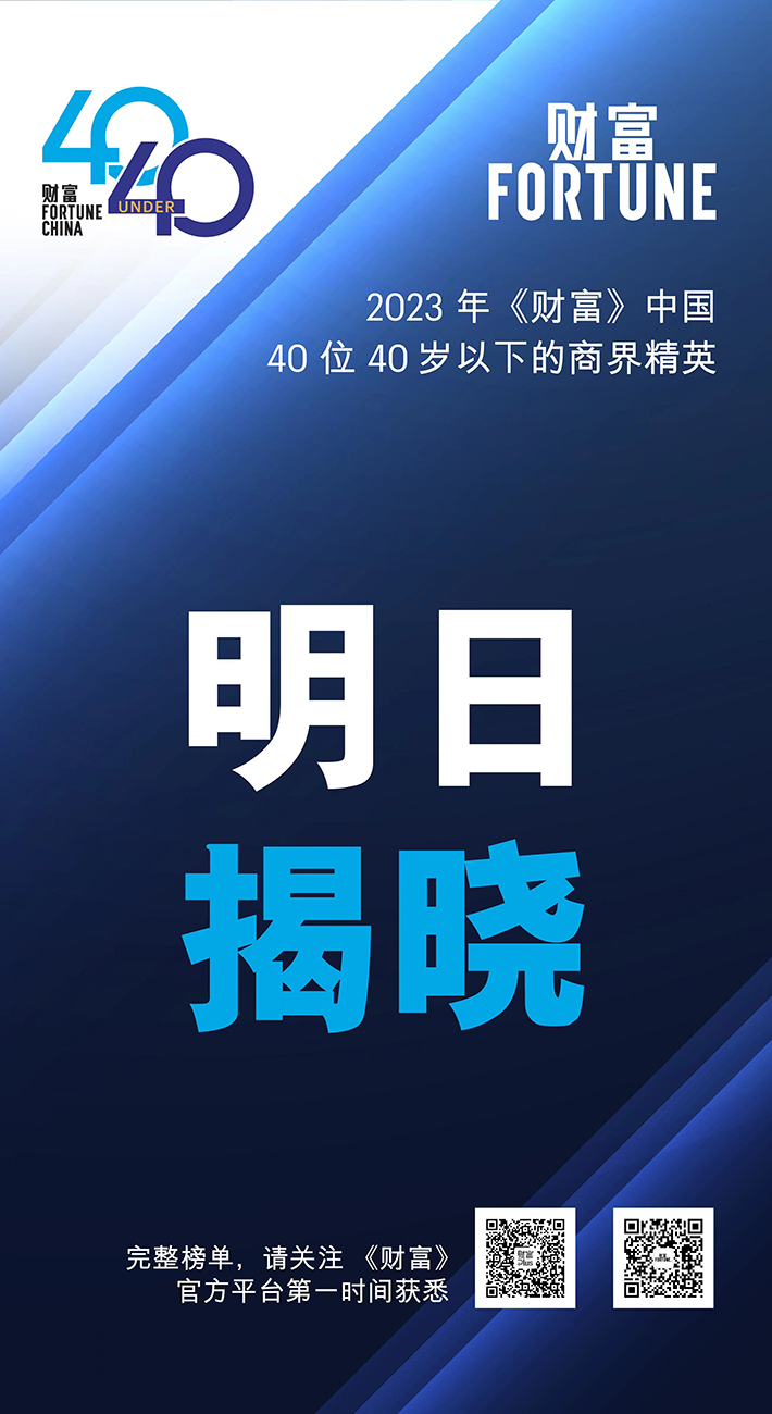 2023年《财富》中国40位40岁以下的商界精英榜单将于明日发布