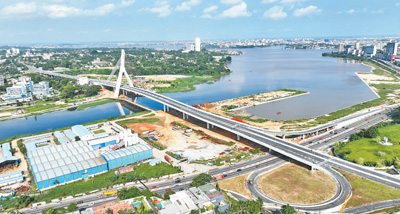 近年来,中国企业为提升非洲基础设施水平、加速互联互通和一体化进程、促进当地经济社会发展和民生改善等作出了积极贡献。图为中国路桥工程有限责任公司承建的科特迪瓦阿比让科科迪斜拉桥项目。 |