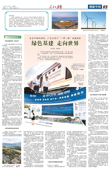 习近平主席在第三届“一带一路”国际合作高峰论坛开幕式上的主旨演讲中宣布了中国支持高质量共建“一带一路”的八项行动,其中之一就是“促进绿色发展”。具体举措中包括,“中方将持续深化绿色基建、绿色能源、绿色交通等领域合作”。自即日起,本报推出系列报道“绿色创新面面观”,分别聚焦绿色基建、绿色能源、绿色交通三大领域,看中国与世界在这三大领域如何开拓创新、合作共赢,将绿色、低碳、可持续的理念不断变为现实。