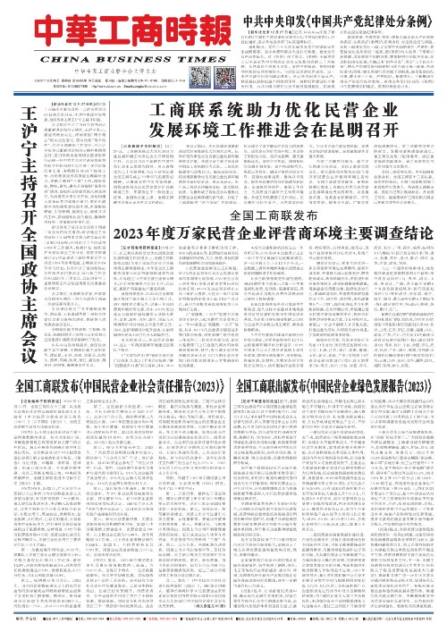 全国工商联出版发布《中国民营企业绿色发展报告(2023)》