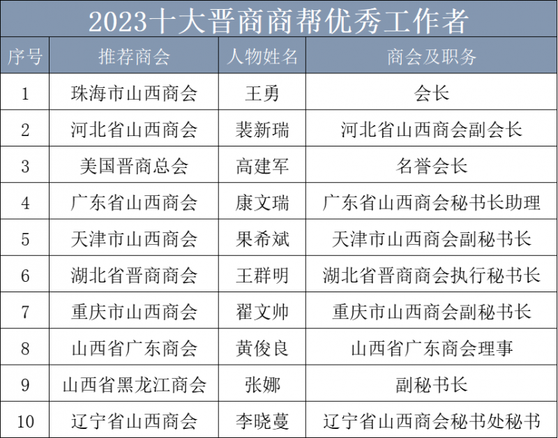 王群明-2023晋商商帮十大优秀工作者 推荐机构湖北省晋商商会