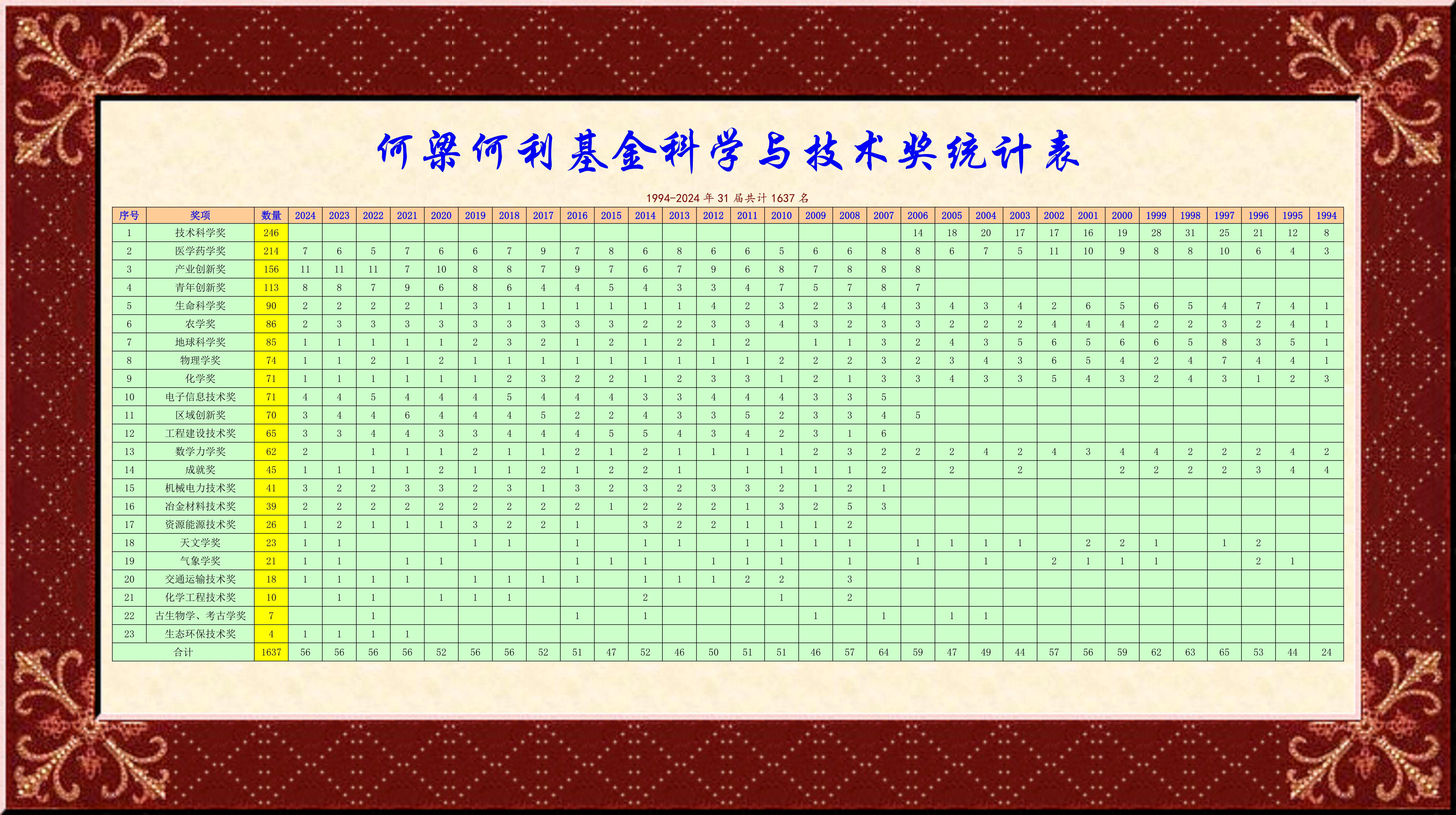 【行业资料】1994-2024何梁何利基金科学与技术奖全榜单1637名