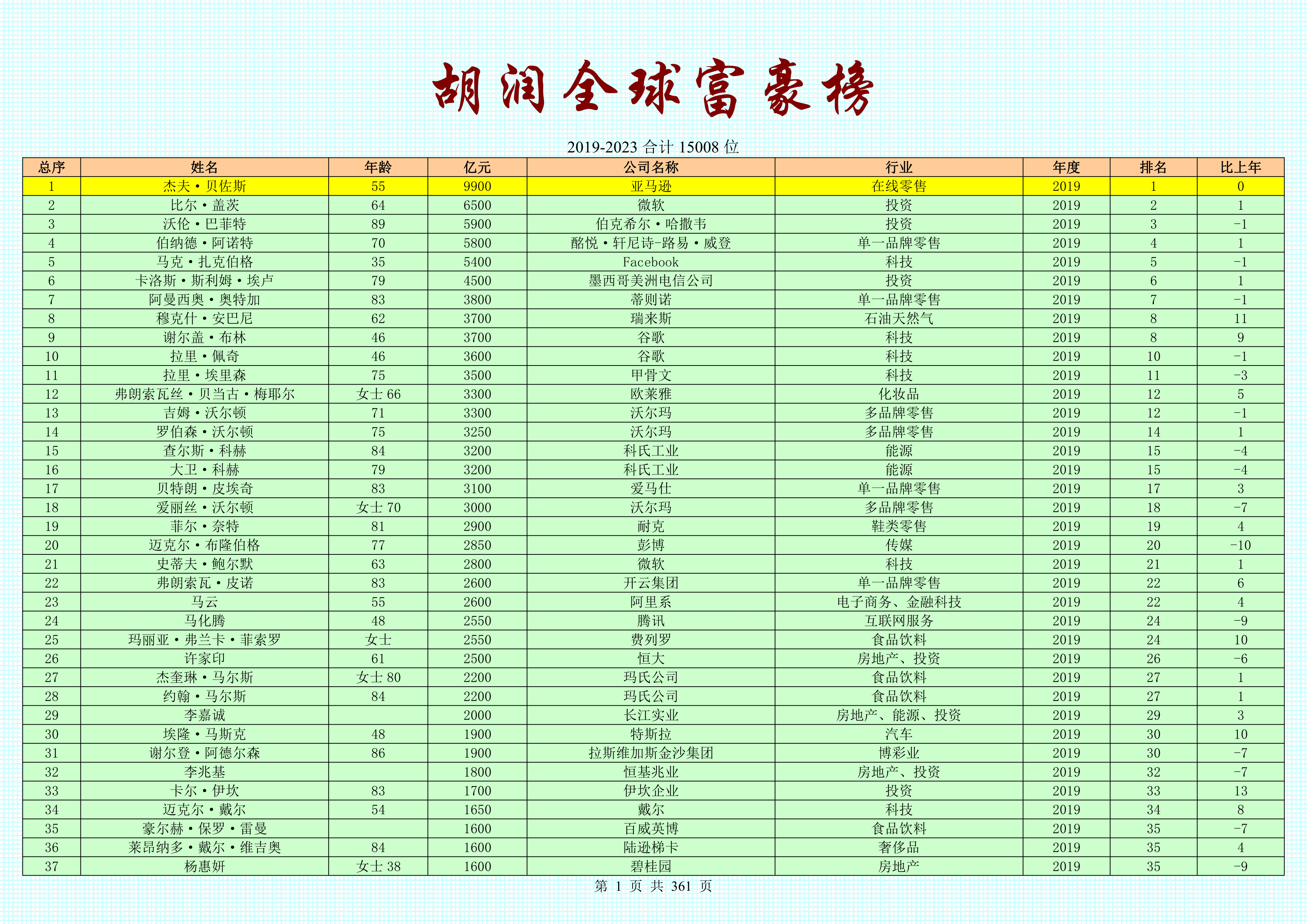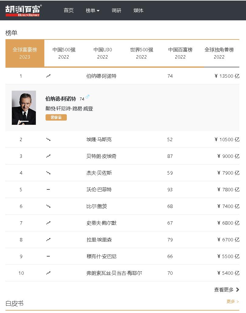 【行业资料】2023胡润全球富豪榜2023-03-24 【行业资料】2021-2022胡润中国民营企业百强榜2023-03-24 【行业动态】2022胡润中国民营企业可持续发展百强榜2023-03-24 【行业动态】2023胡润全球富豪榜变动剧烈!LV总裁首登首富,445人落选2023-03-24 【行业资料】2022意才·胡润财富报告2023-03-12 【行业资料】胡润世界500强2020-20222023-02-01 【行业资料】2019-2022胡润中国(民营企业)500强排行榜2023-02-01 【行业资料】胡润全球富豪榜 胡润中国百富榜总榜单2023-01-29 【行业资料】胡润百富榜总榜单2023-01-06