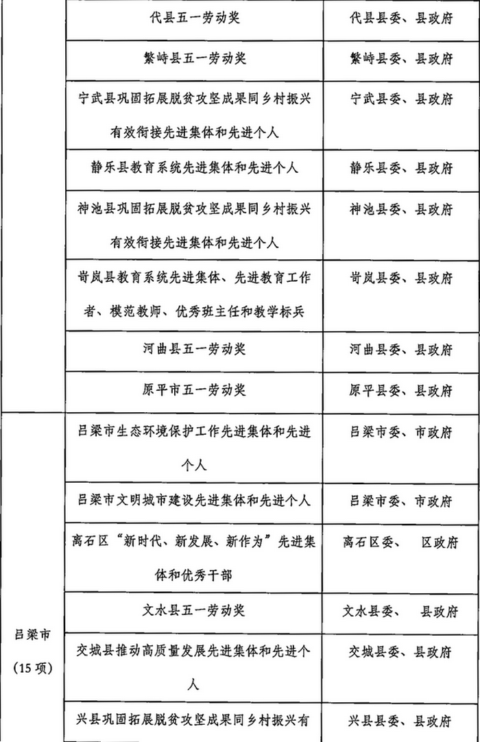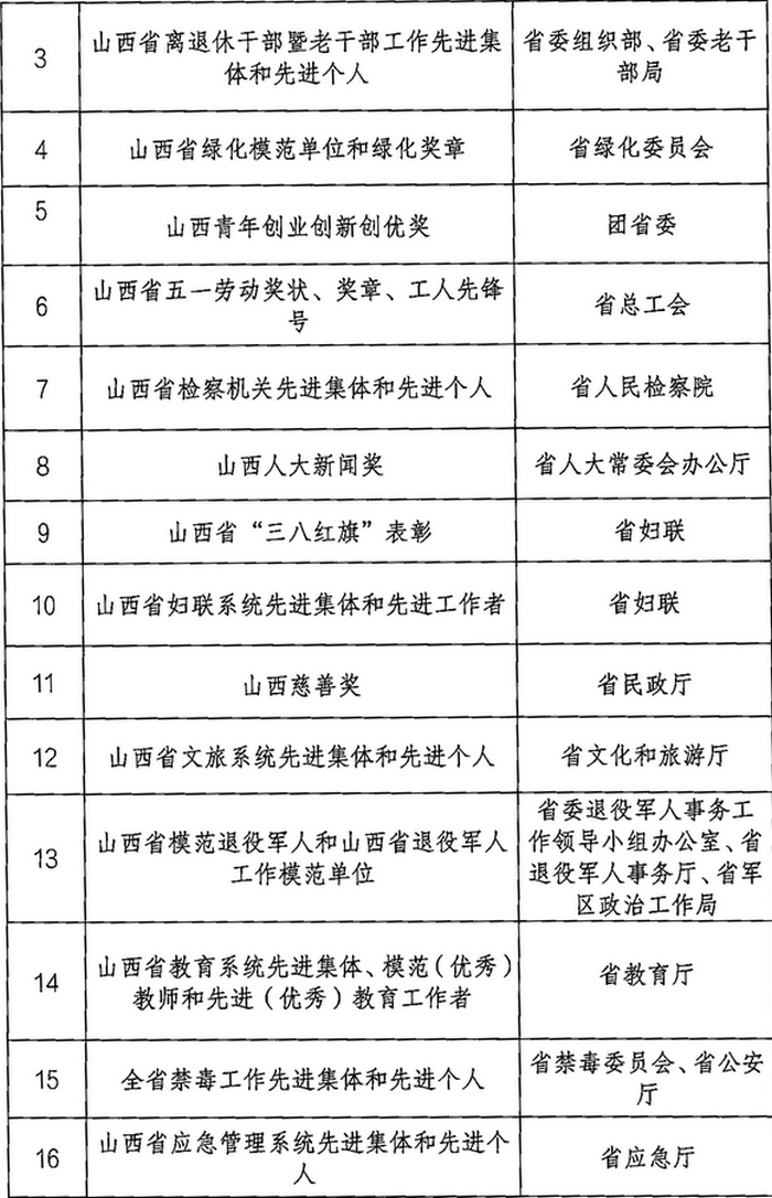 山西省2023年计划开展的评比达标表彰项目目录