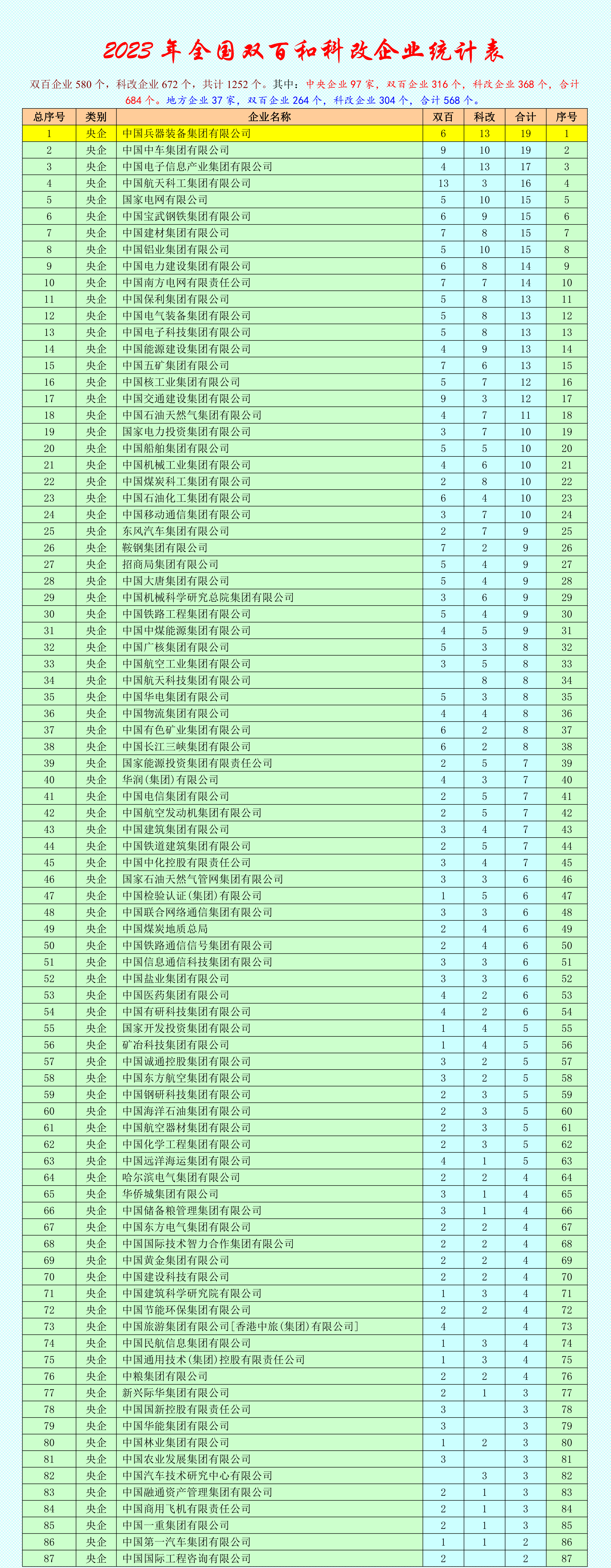 来源:共计1252家,其中:双百企业580家,科改企业672家