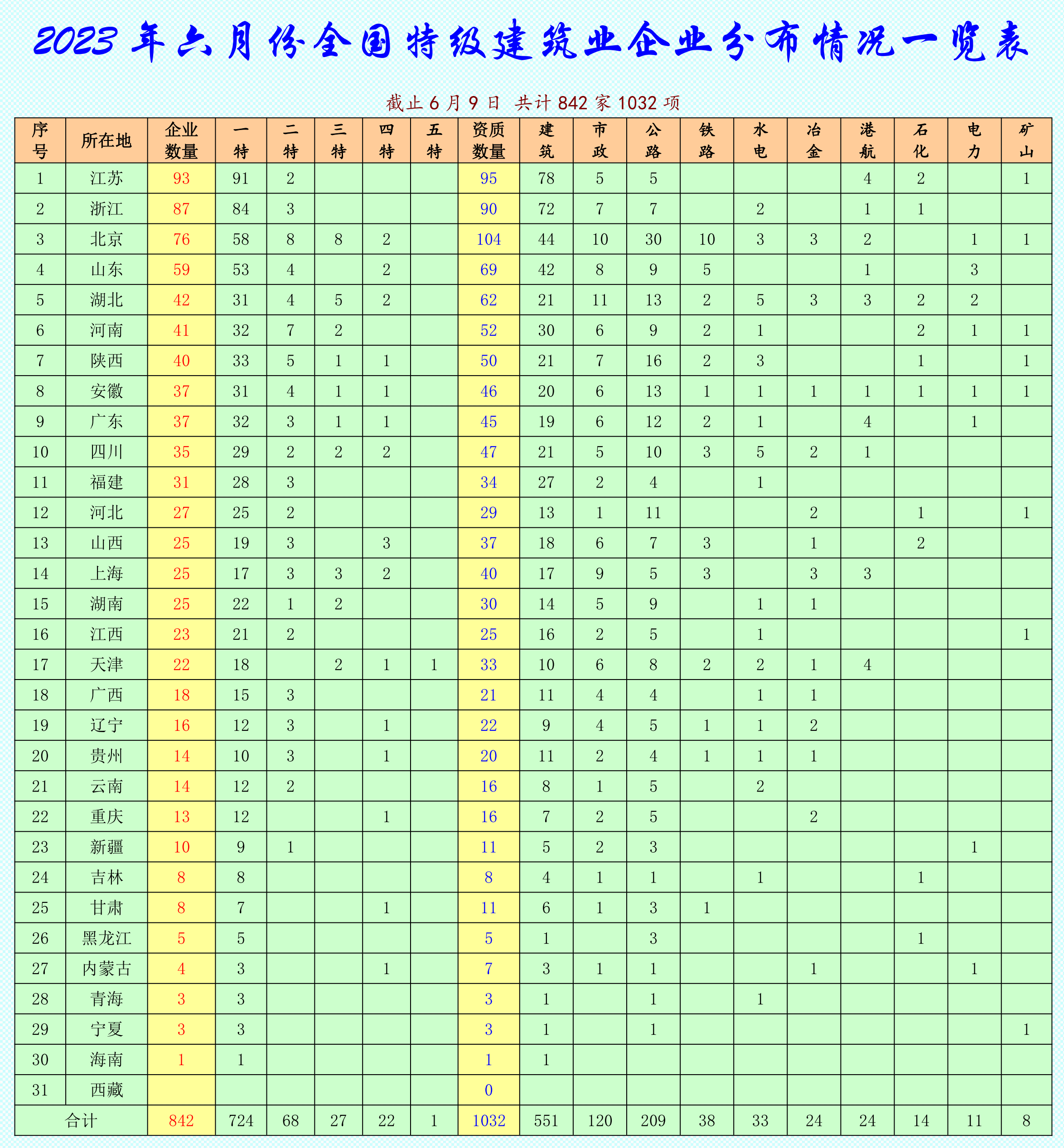 【学习园地】2023年四月份全国特级资质建筑业企业名单829家1019项