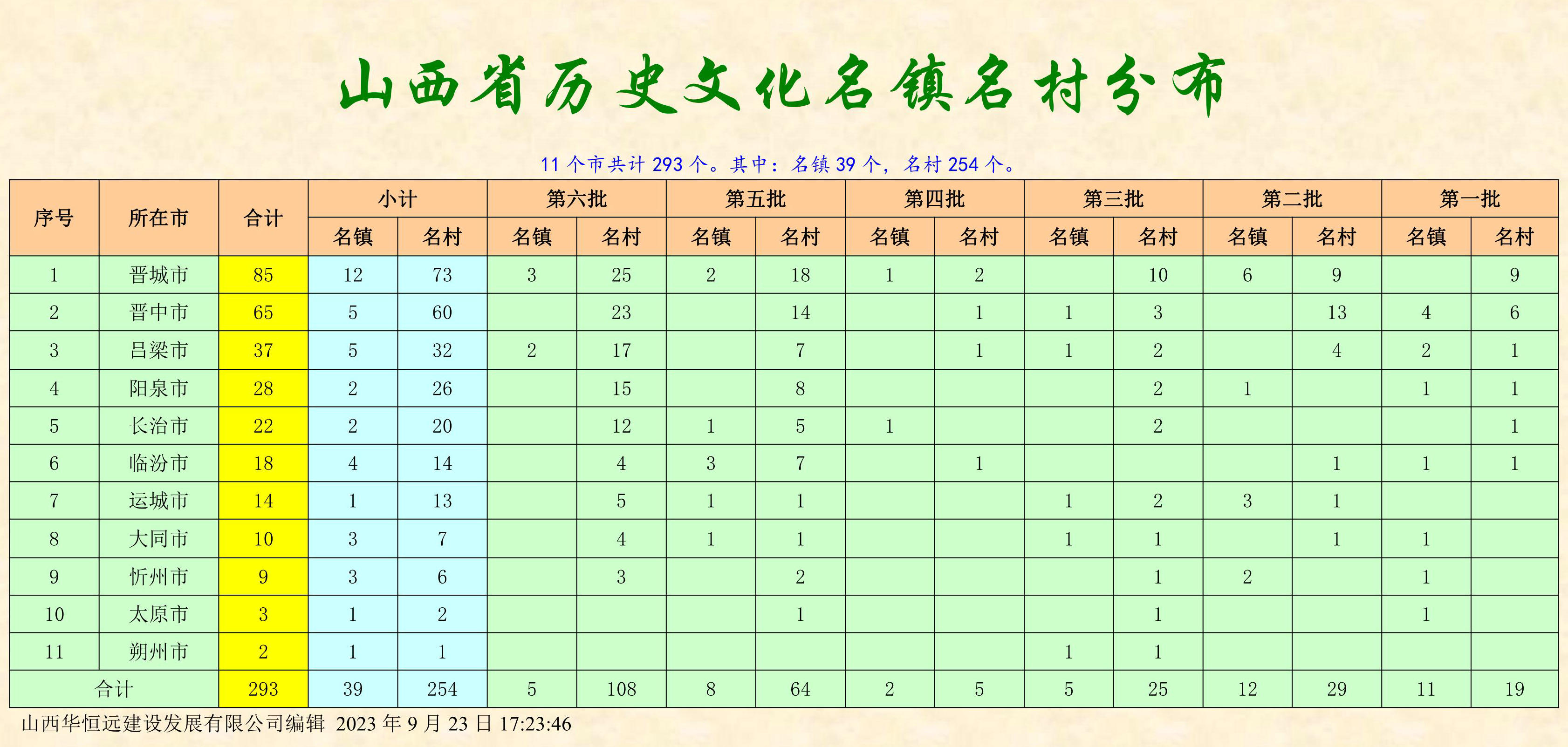 第一批至第六批共计293个。其中:名镇39个,名村254个。