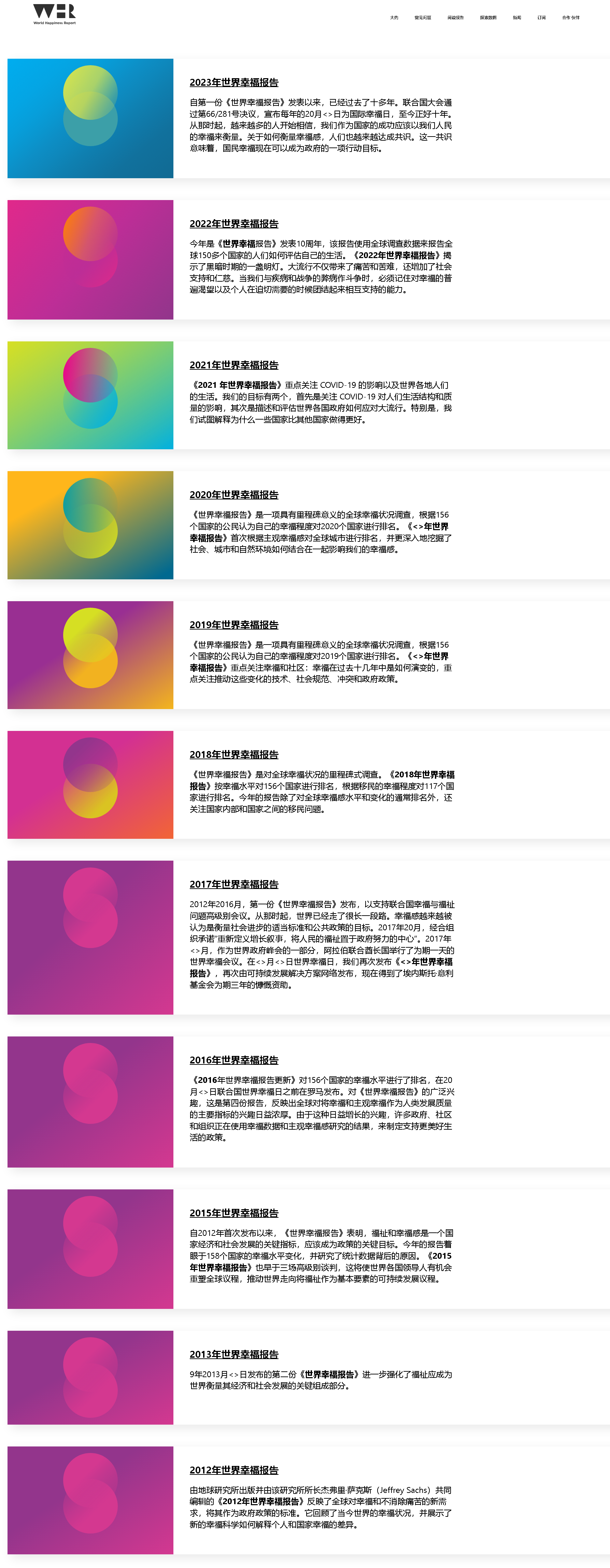2012年2016月,第一份《世界幸福报告》发布,以支持联合国幸福与福祉问题高级别会议。从那时起,世界已经走了很长一段路。幸福感越来越被认为是衡量社会进步的适当标准和公共政策的目标。2017年20月,经合组织承诺“重新定义增长叙事,将人民的福祉置于政府努力的中心”。2017年<>月,作为世界政府峰会的一部分,阿拉伯联合酋长国举行了为期一天的世界幸福会议。在<>月<>日世界幸福日,我们再次发布《<>年世界幸福报告》,再次由可持续发展解决方案网络发布,现在得到了埃内斯托·意利基金会为期三年的慷慨资助。