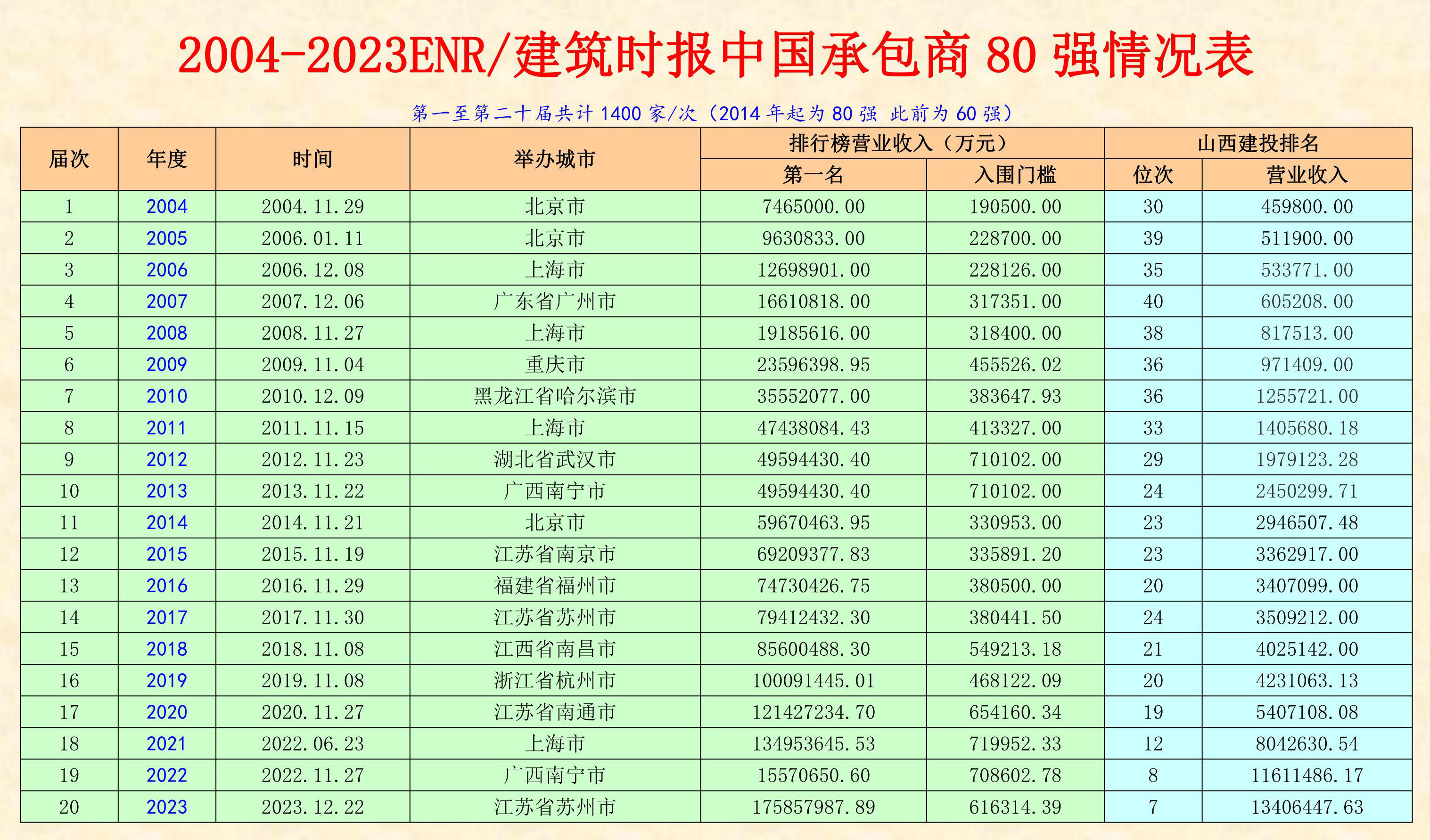 · 【行业资料】2004-2022ENR/建筑时报中国承包商 80 强统计表2023-08-08