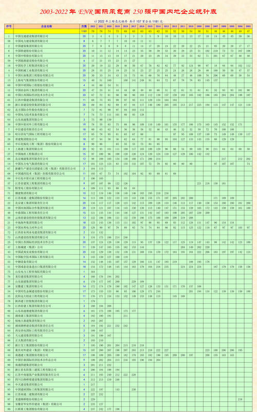2003-2022年ENR国际承包商250强中国内地企业统计表