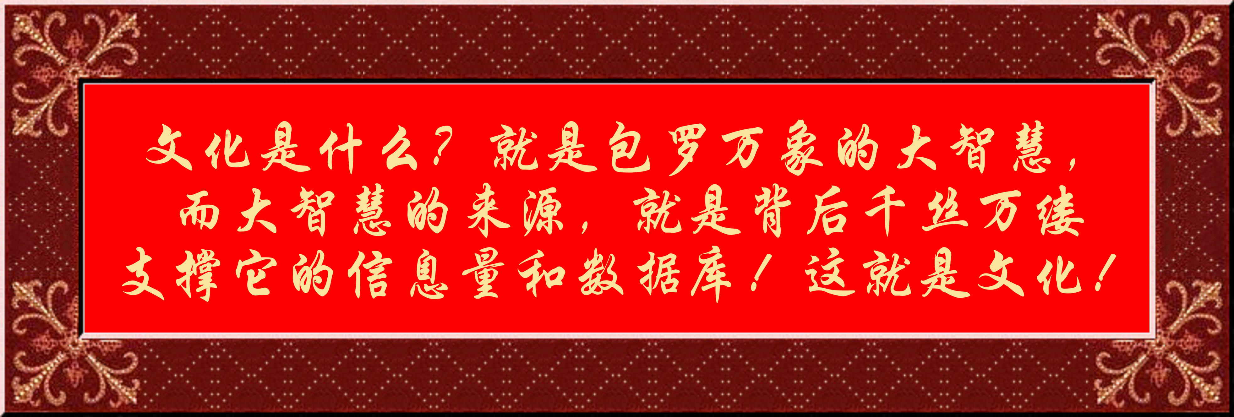 文化是什么?就是包罗万象的大智慧,而大智慧的来源,就是背后千丝万缕支撑它的信息量和数据库!