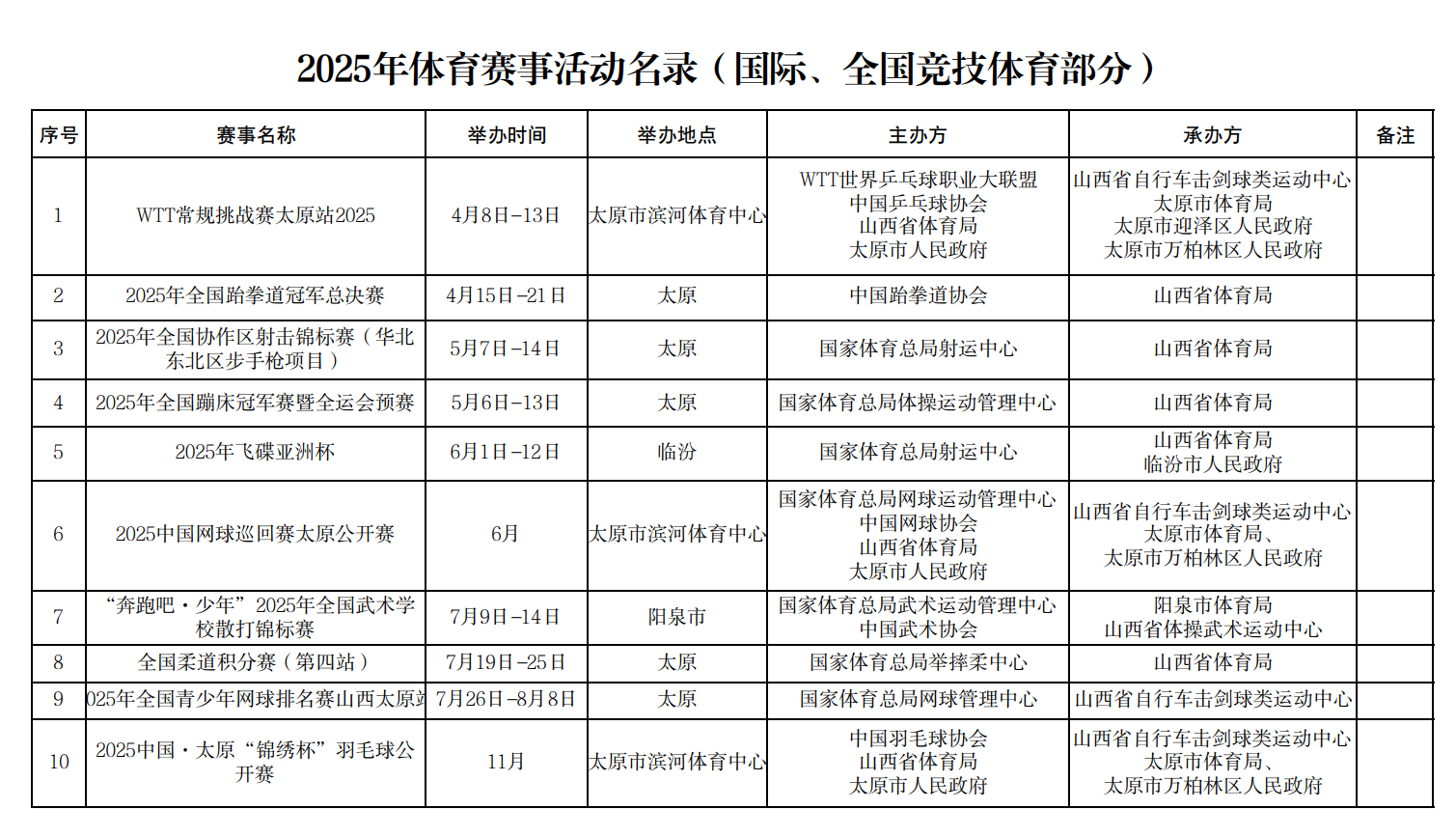 黄河新闻网讯(记者牛牧瑶)近日,山西省体育局印发《2025年体育赛事活动名录》,汇总了2025年我省各类主要体育赛事,共分三大类,总计1563项赛事。