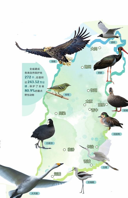 我省地处黄河流域中部,拥有森林、草原、湿地、荒漠、农田和城市等生态系统类型,物种多样性资源丰富,分布有陆生野生植物2743种,陆生野生动物543种,遗传资源颇具地方特色。近年来,我省高度重视生物多样性保护工作,最大限度地为野生动植物提供和谐友好的繁衍生息空间,三晋大地生物多样性“家谱”不断丰富。