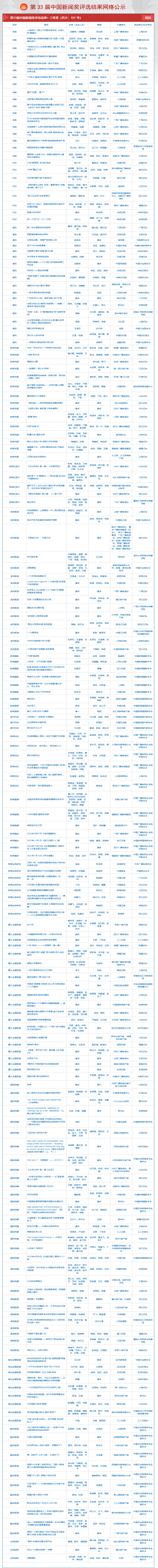 新华社北京9月20日电 自9月20日起,中国记协在中国记协微信公众号、中国记协网公示第三十三届中国新闻奖评选结果。本届中国新闻奖共评选出378件拟获奖作品,其中特别奖3件、一等奖74件、二等奖114件、三等奖187件。同时公示的还有本届《中国新闻奖评选细则》和评委名单。