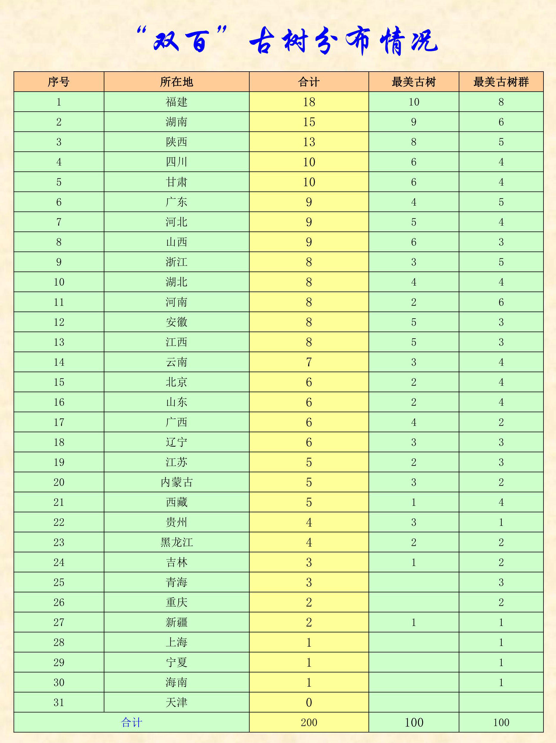 100株最美古树名单