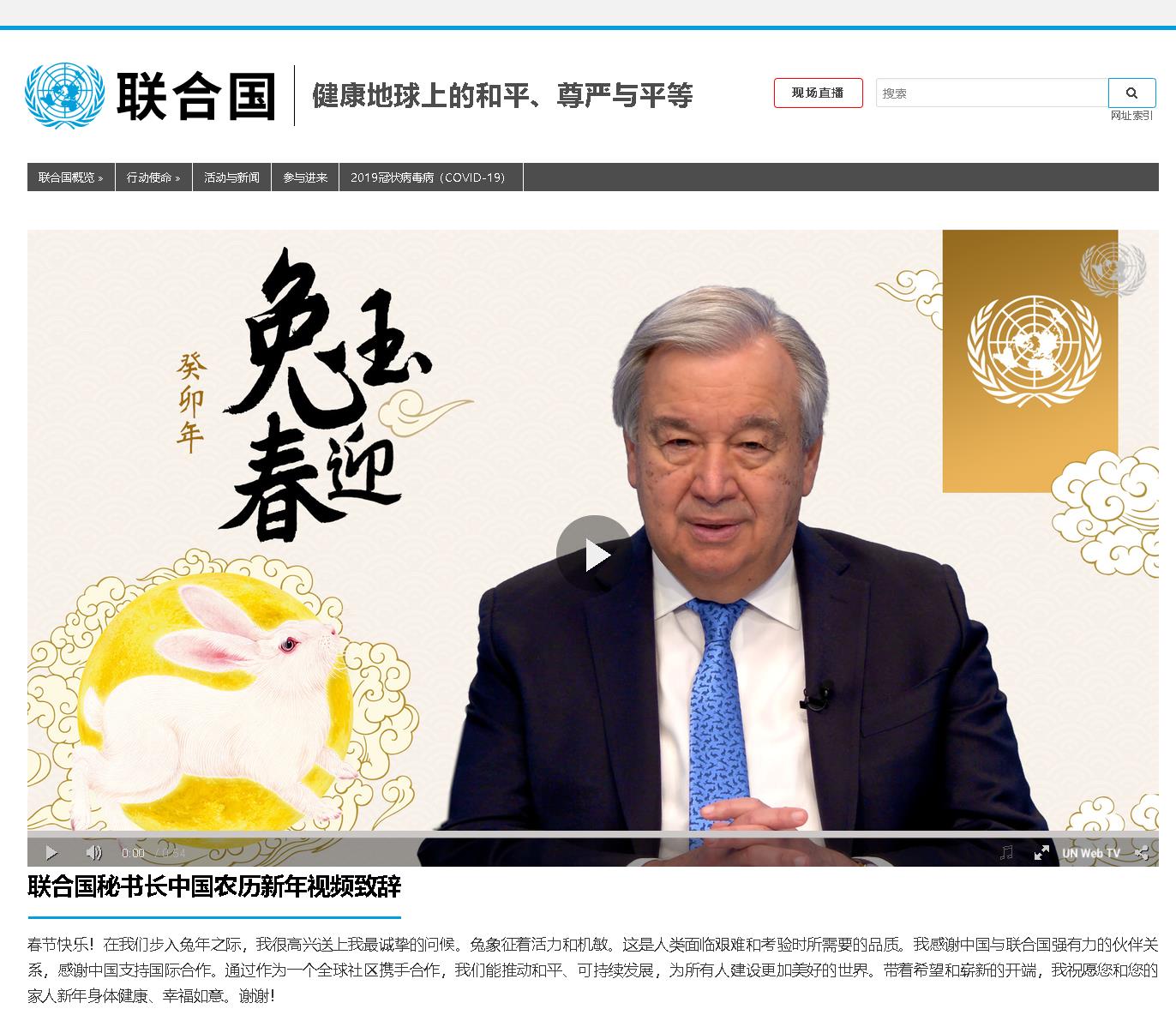 [新闻直播间]联合国秘书长祝福中国人民新春快乐