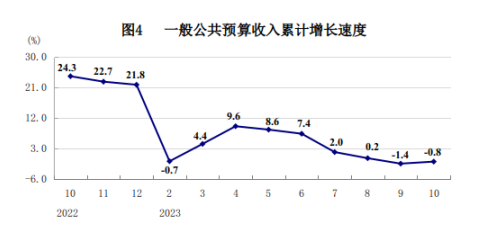 1-10月份,全省一般公共预算收入2957.2亿元,下降0.8%。其中,占比75.5%的税收收入下降5.5%,占比24.5%的非税收入增长17.1%。一般公共预算支出4830.1亿元,增长10.0%。10月份,全省一般公共预算收入290.6亿元,增长5.1%;一般公共预算支出423.0亿元,增长36.6%。
