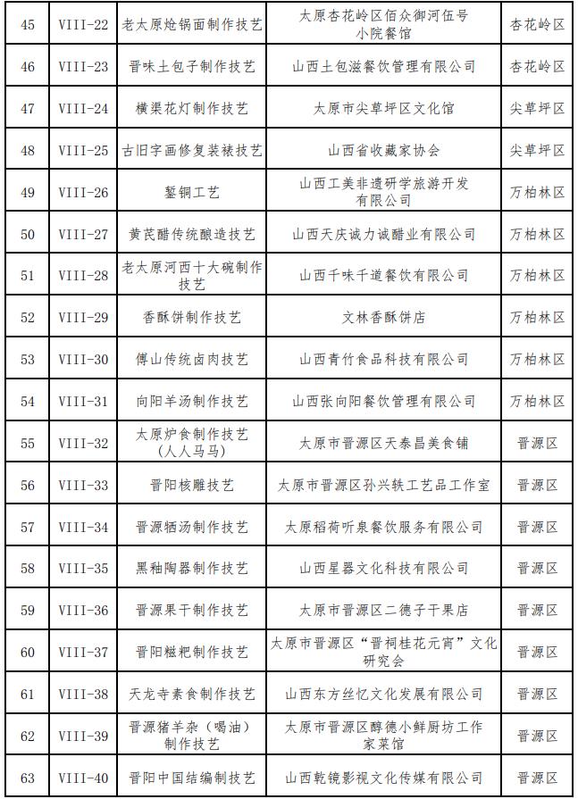 42 VIII-19 漏鱼儿传统制作技艺 传统技艺 山西晋王府餐饮管理有限公司 杏花岭区