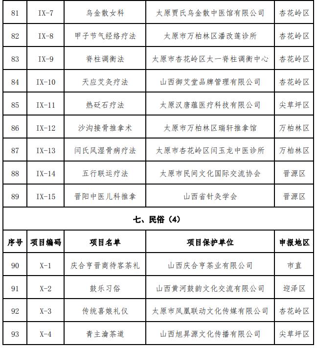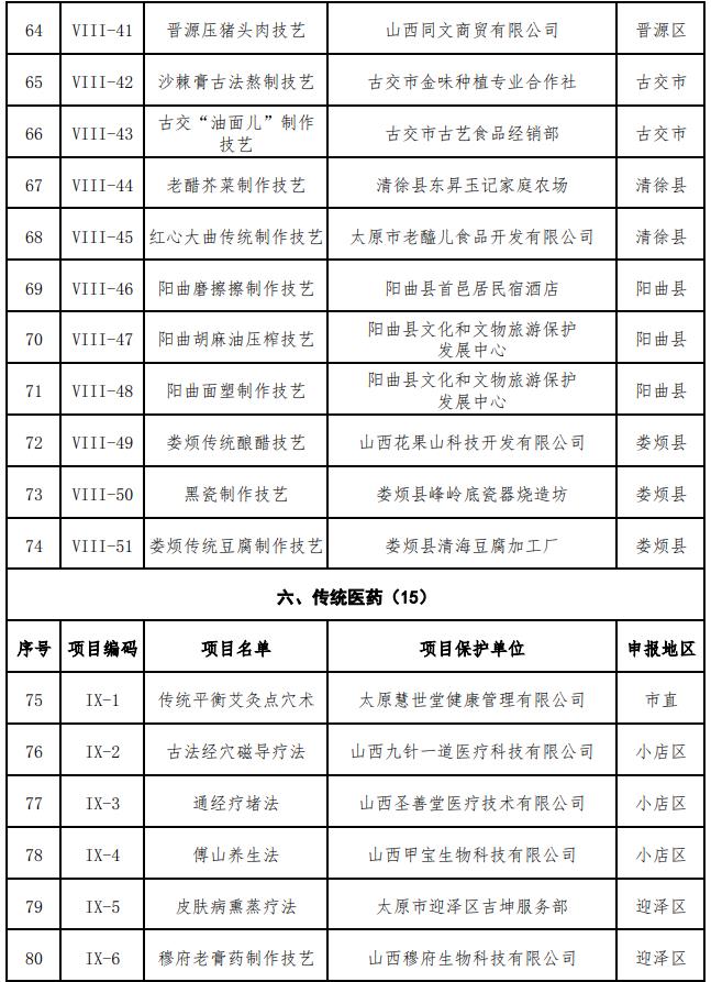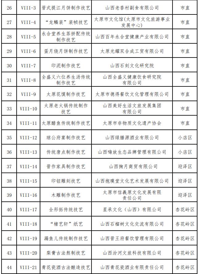 太原市第八批市级非物质文化遗产代表性项目名录