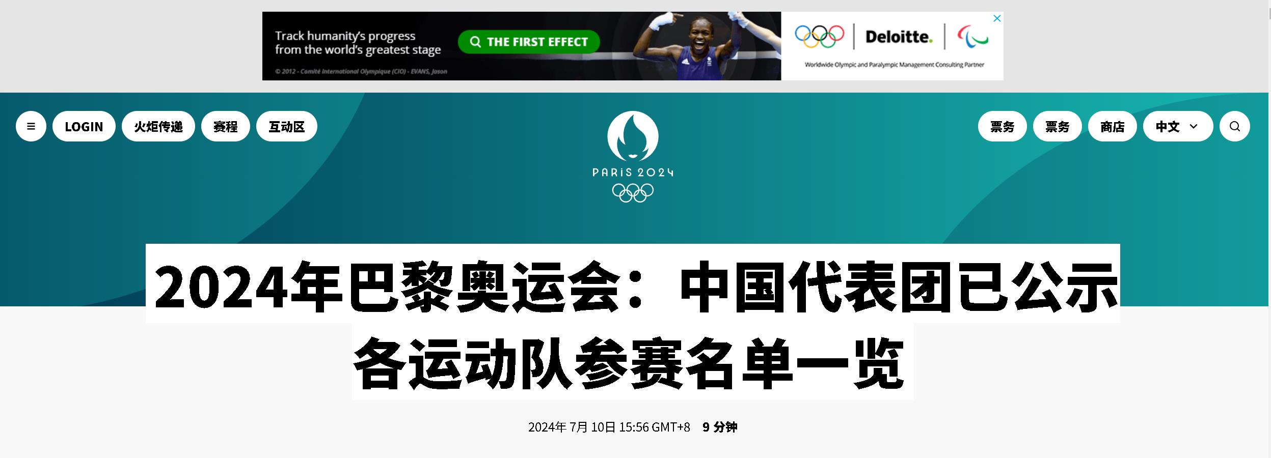 【学习园地】2024年巴黎奥运会中国体育代表团名单