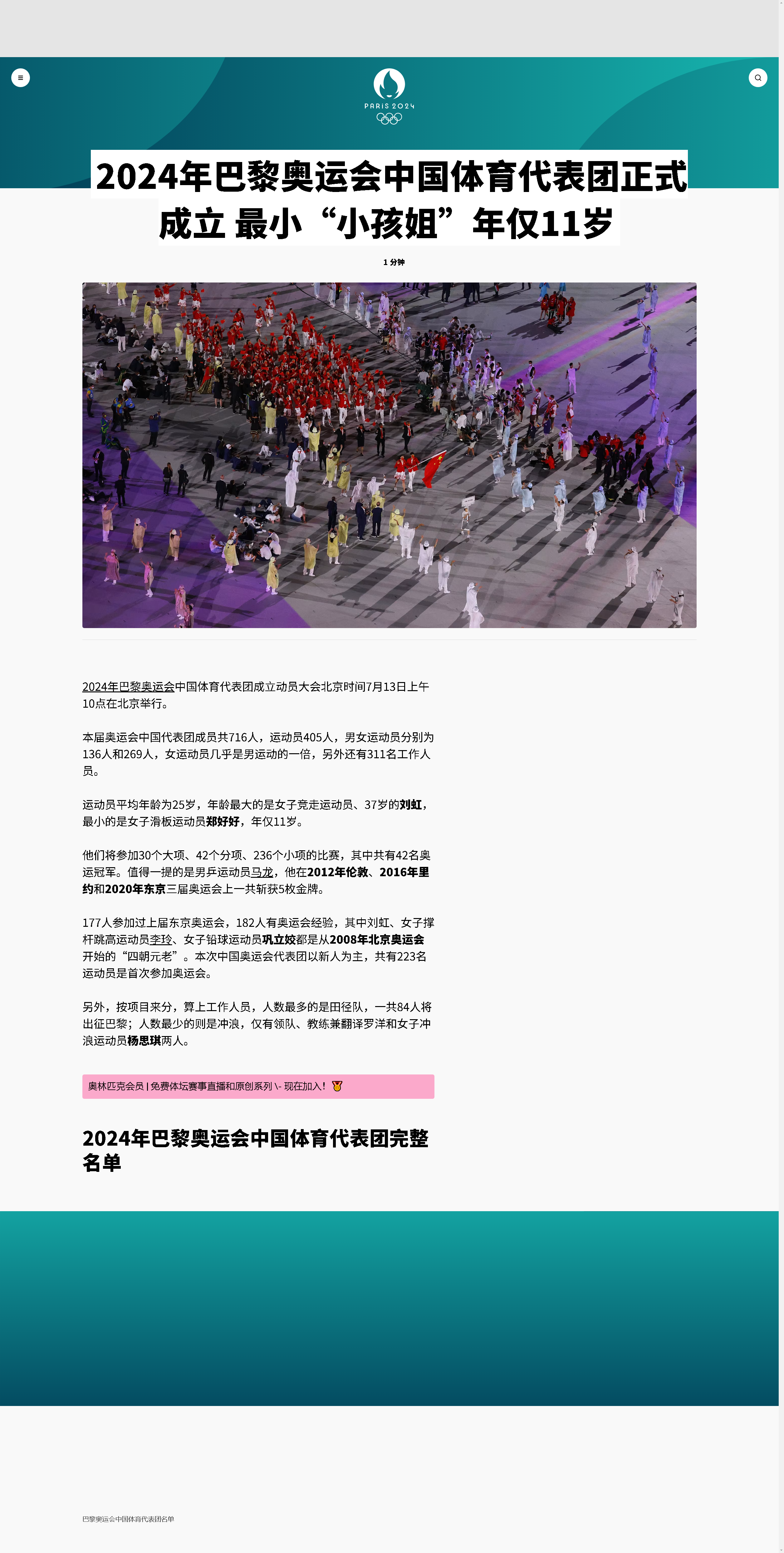 2024年巴黎奥运会中国体育代表团成立动员大会北京时间7月13日上午10点在北京举行。