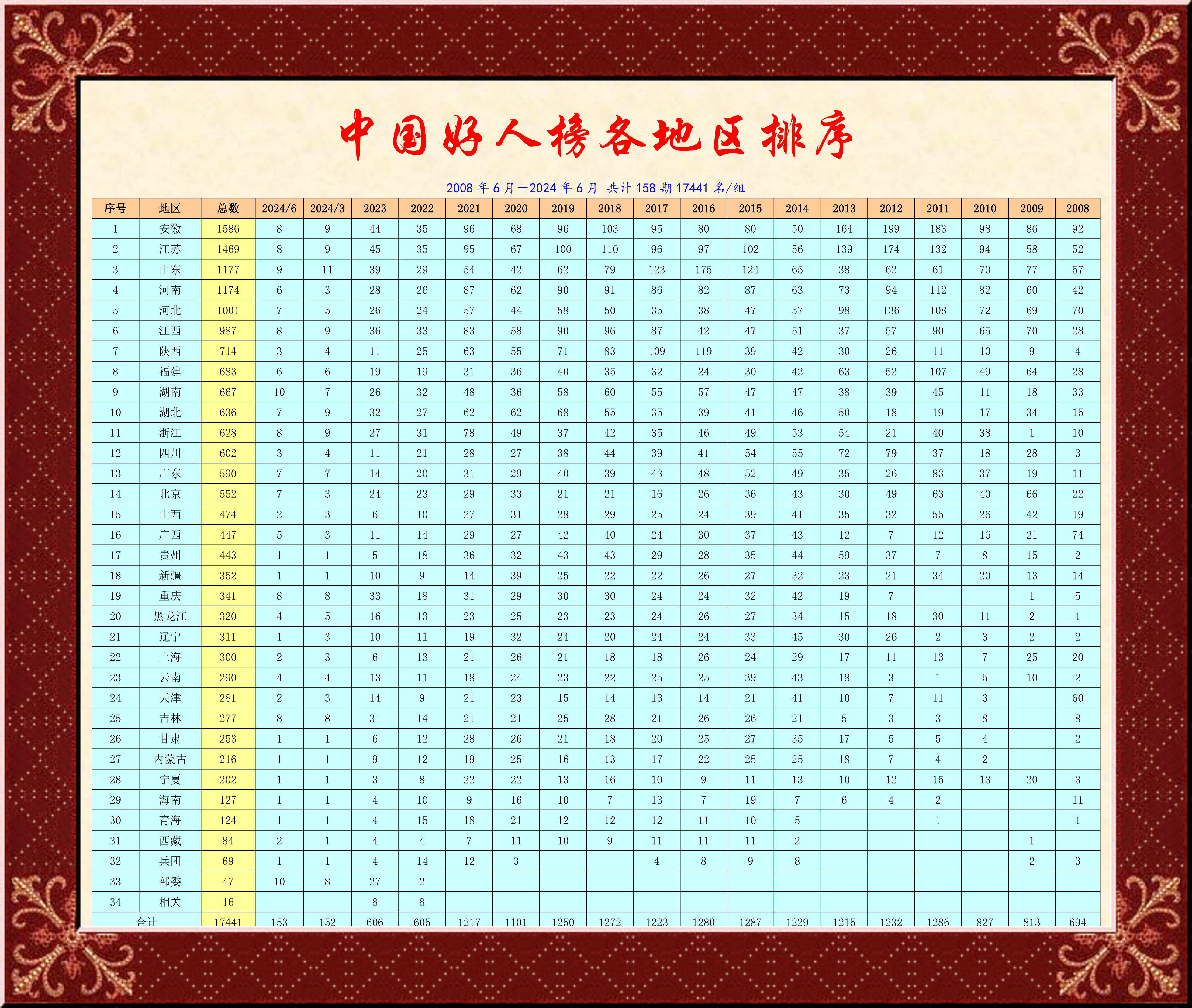 7月30日,2024年第二季度“中国好人榜”发布仪式暨全国道德模范与身边好人现场交流活动在山西省大同市举办。经各地推荐、网友评议和专家评审等环节,共有153人(组)助人为乐、见义勇为、诚实守信、敬业奉献、孝老爱亲身边好人光荣上榜。