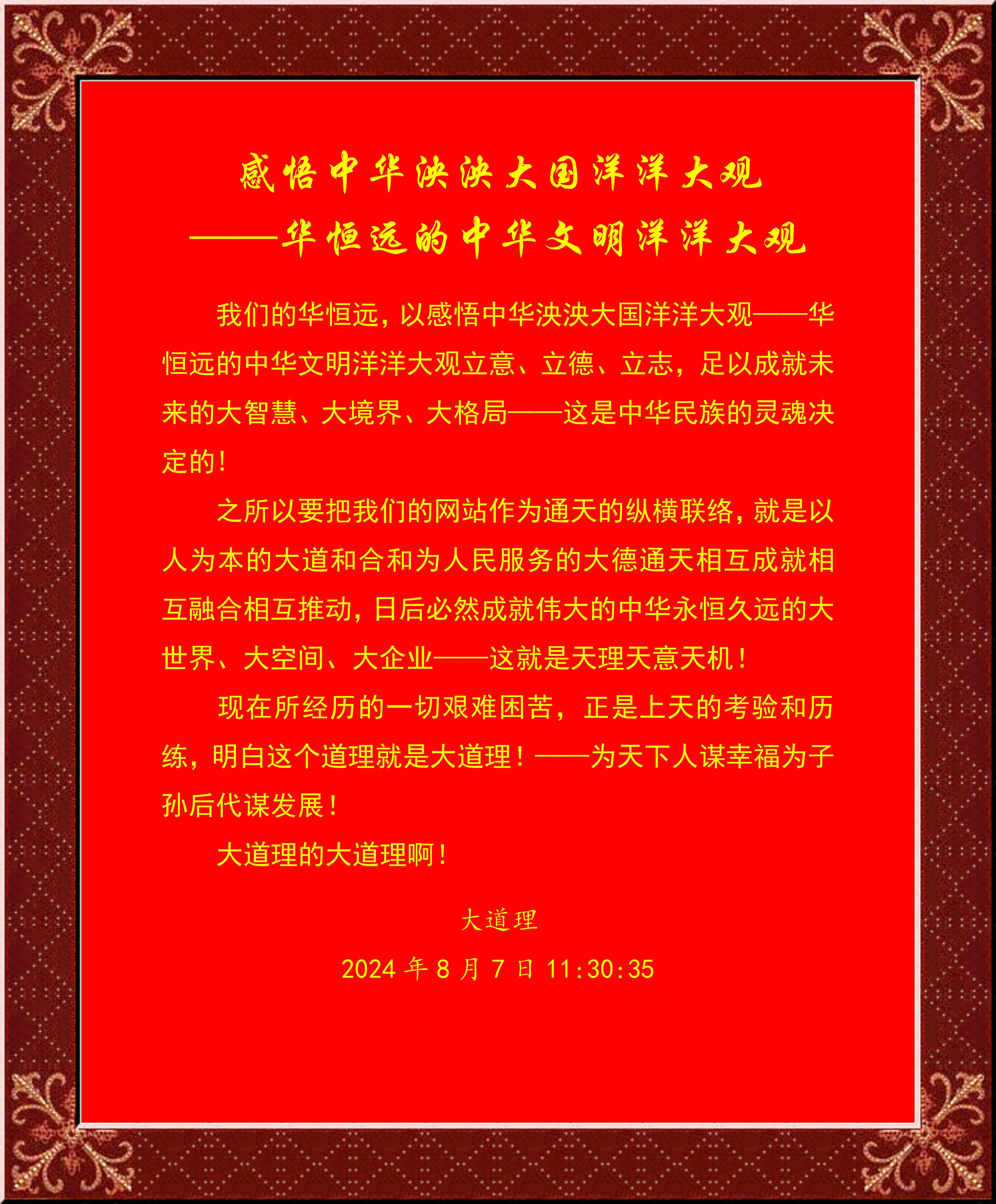 我们的太阳成tyc7111cc官网,以感悟中华泱泱大国洋洋大观——太阳成tyc7111cc官网的中华文明洋洋大观立意、立德、立志,足以成就未来的大智慧、大境界、大格局——这是中华民族的灵魂决定的!