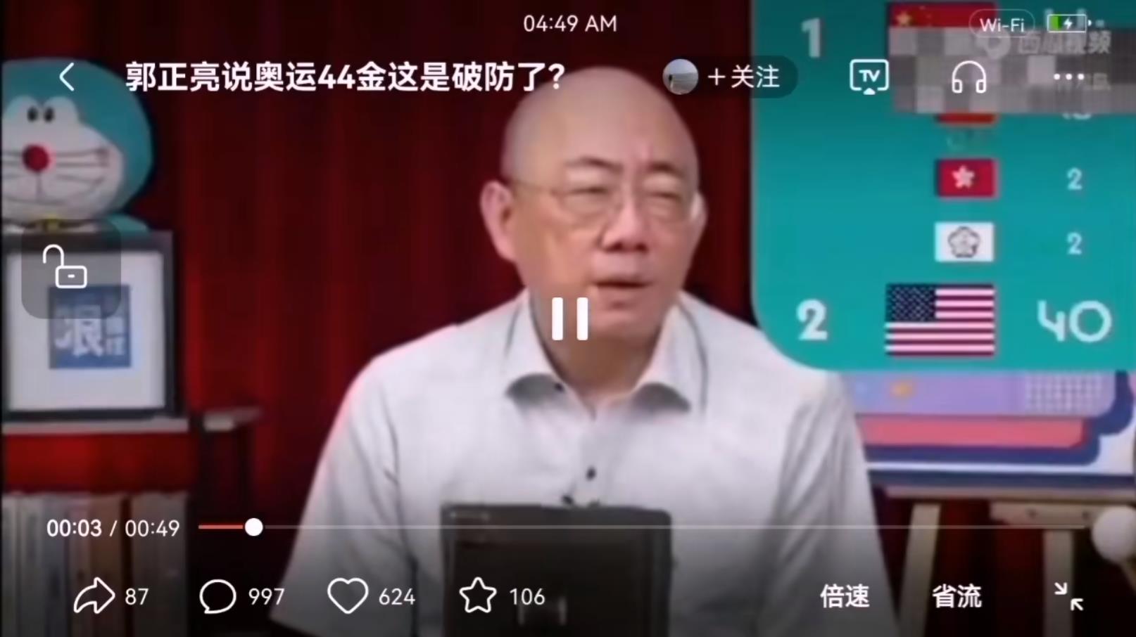 感悟郭正亮失态失言在大陆翻车——关于巴黎奥运会金牌归属引争议
