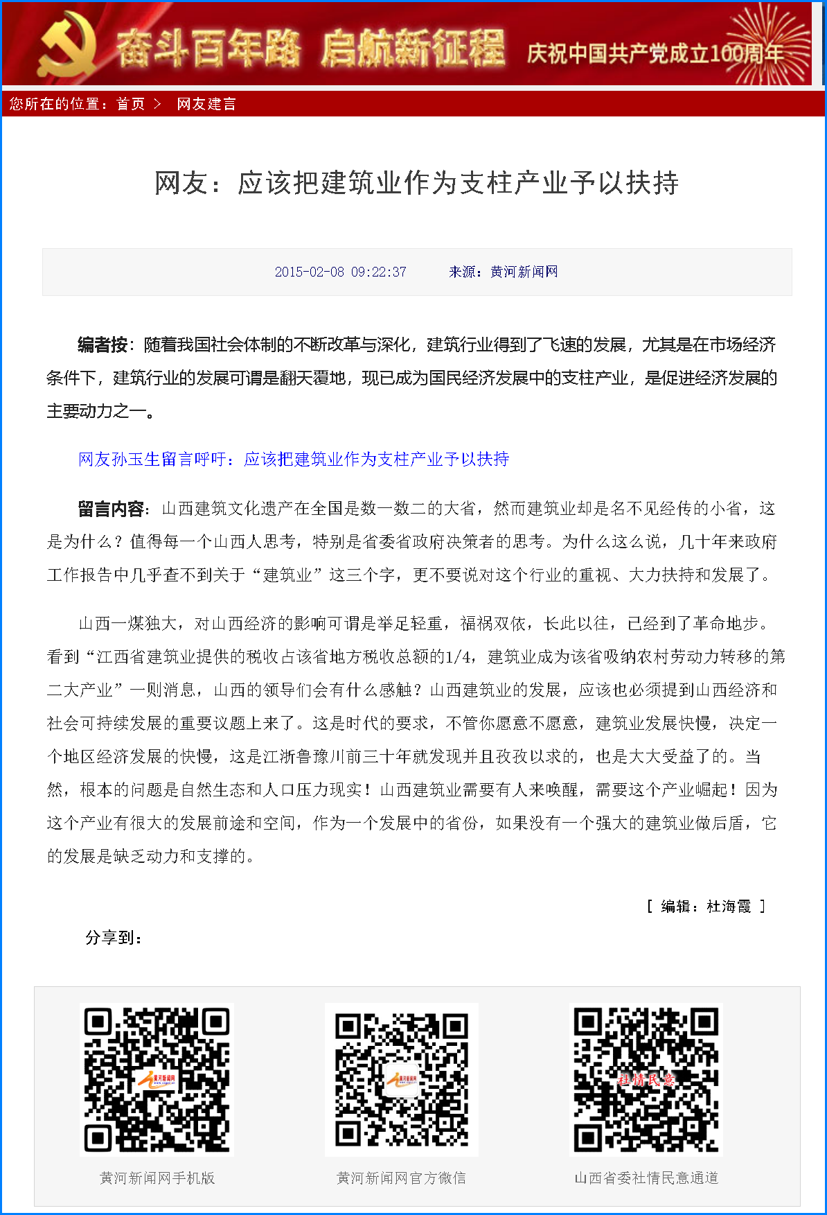 20 网友:应该把建筑业作为支柱产业予以扶持 2015-02-08