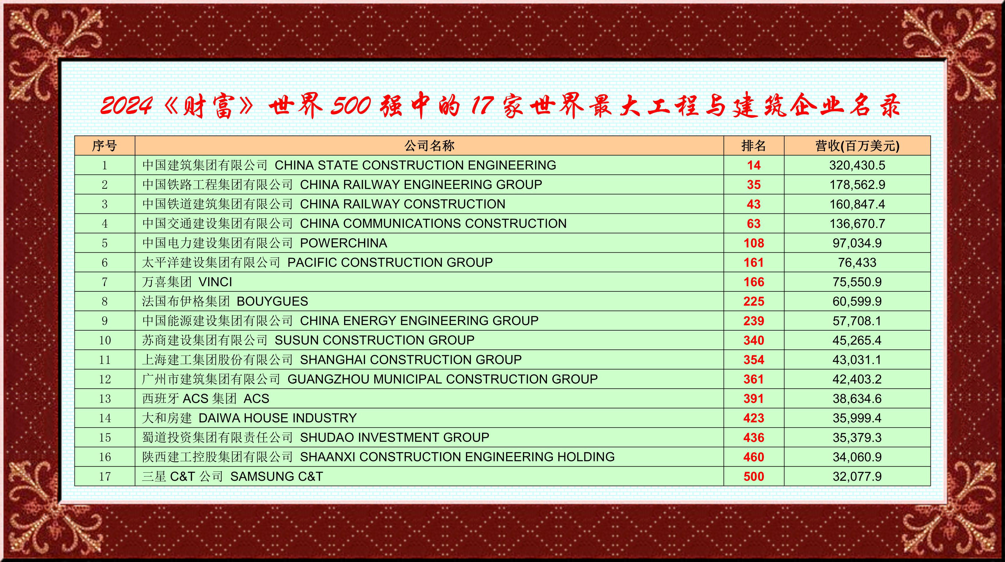 当今世界,建筑业的地位,对经济社会发展,发挥着安居乐业百业兴旺举足轻重的基础作用,国际知名工程建筑大公司都有哪些?它们分布在哪些国家?我们应当心知肚明了如指掌,这样才能够树立目标,学有榜样,比学赶超,战略方向!