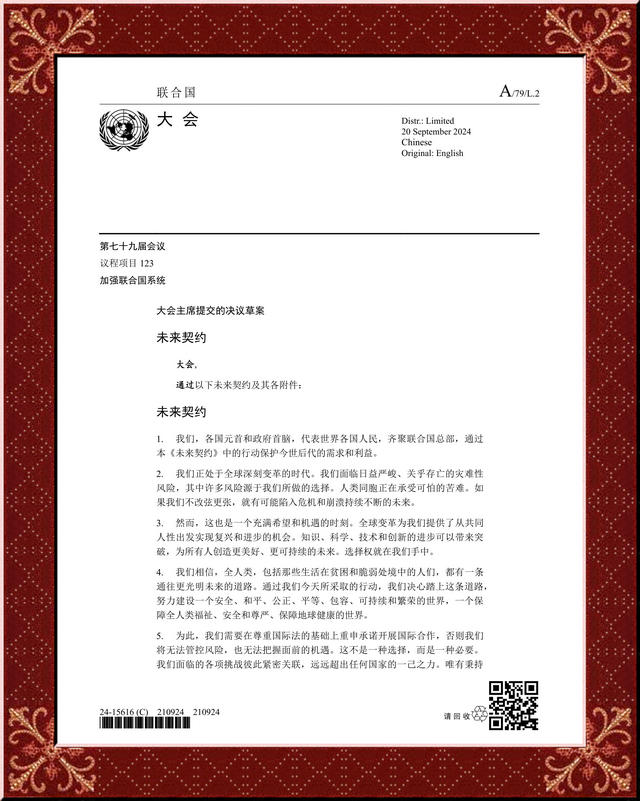 【时政要闻】联合国未来峰会开幕 通过《未来契约》促发展