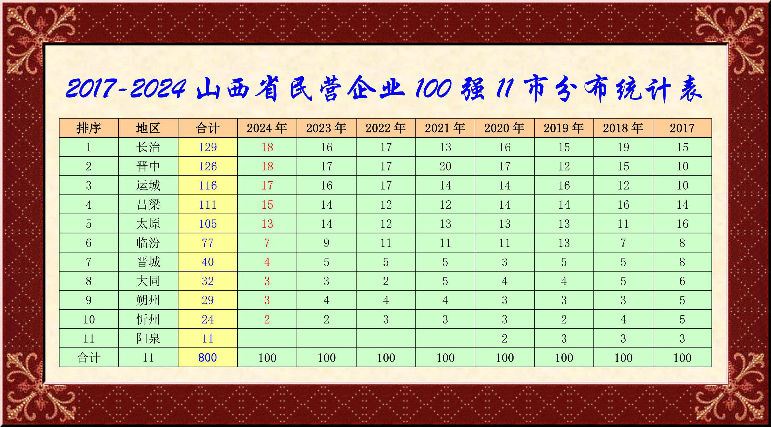序号 企业名称 所在地 合计 ?各年排名 2024 2023 2022 2021 2020 2019 2018 2017